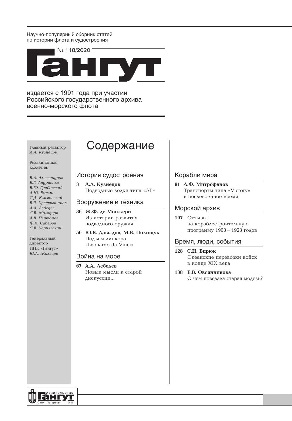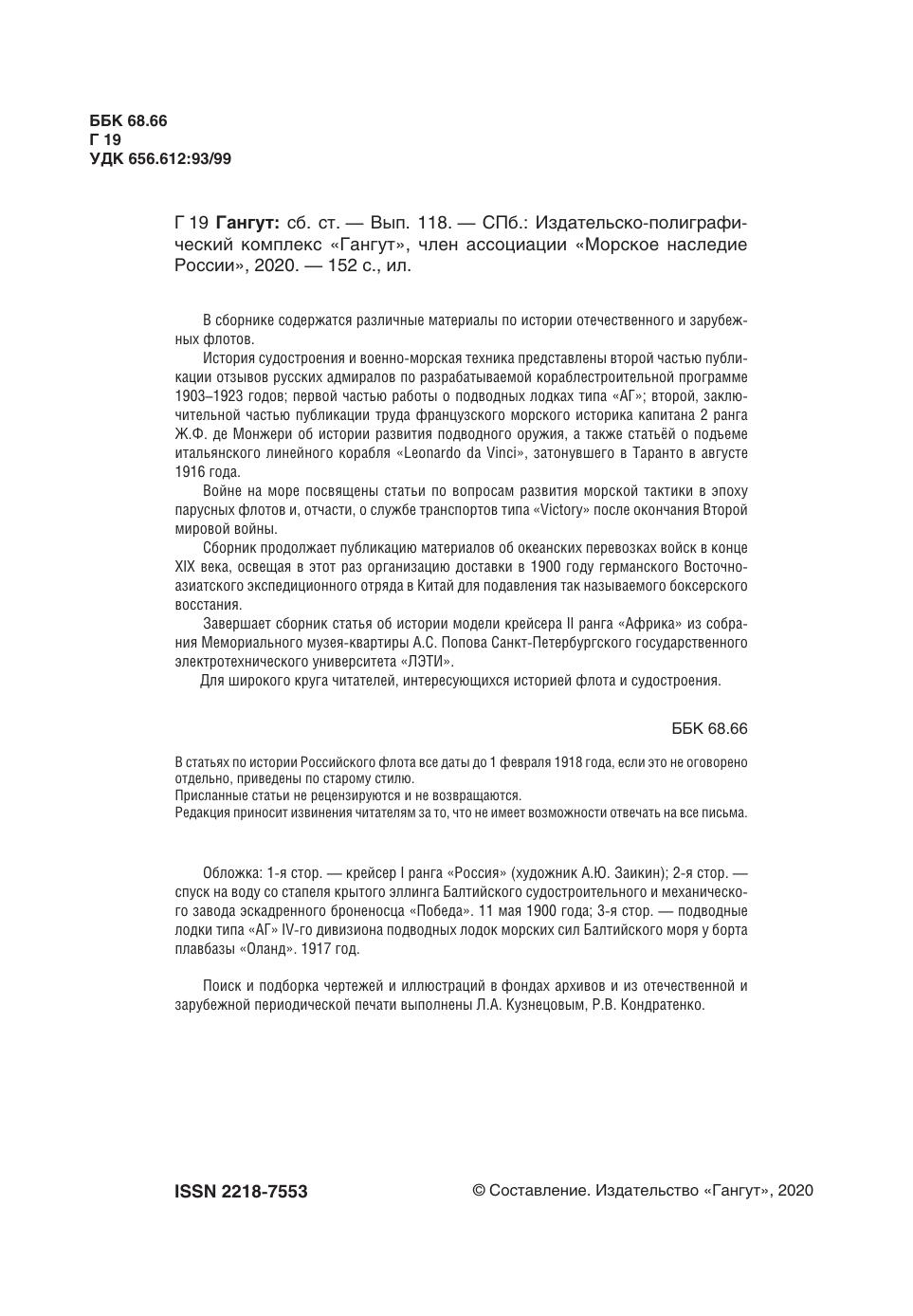 Научно-популярный сборник статей по истории флота и судостроения "Гангут". Выпуск № 118