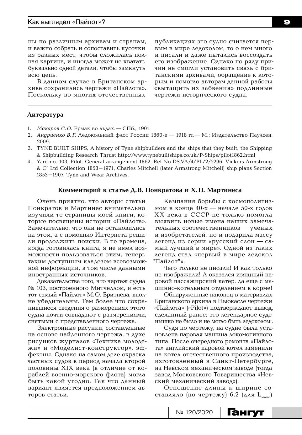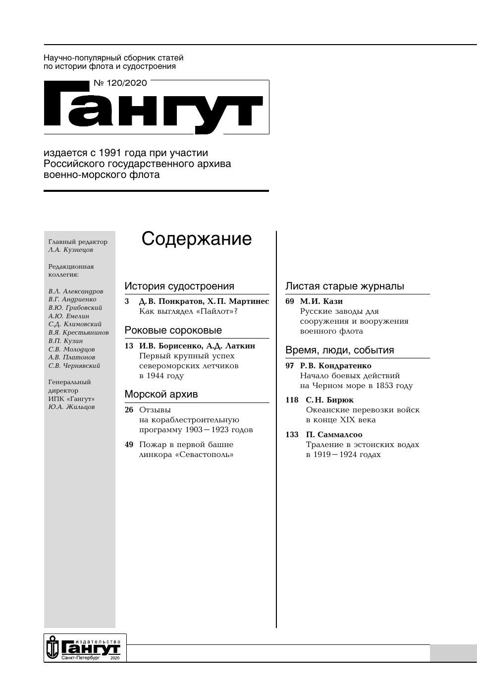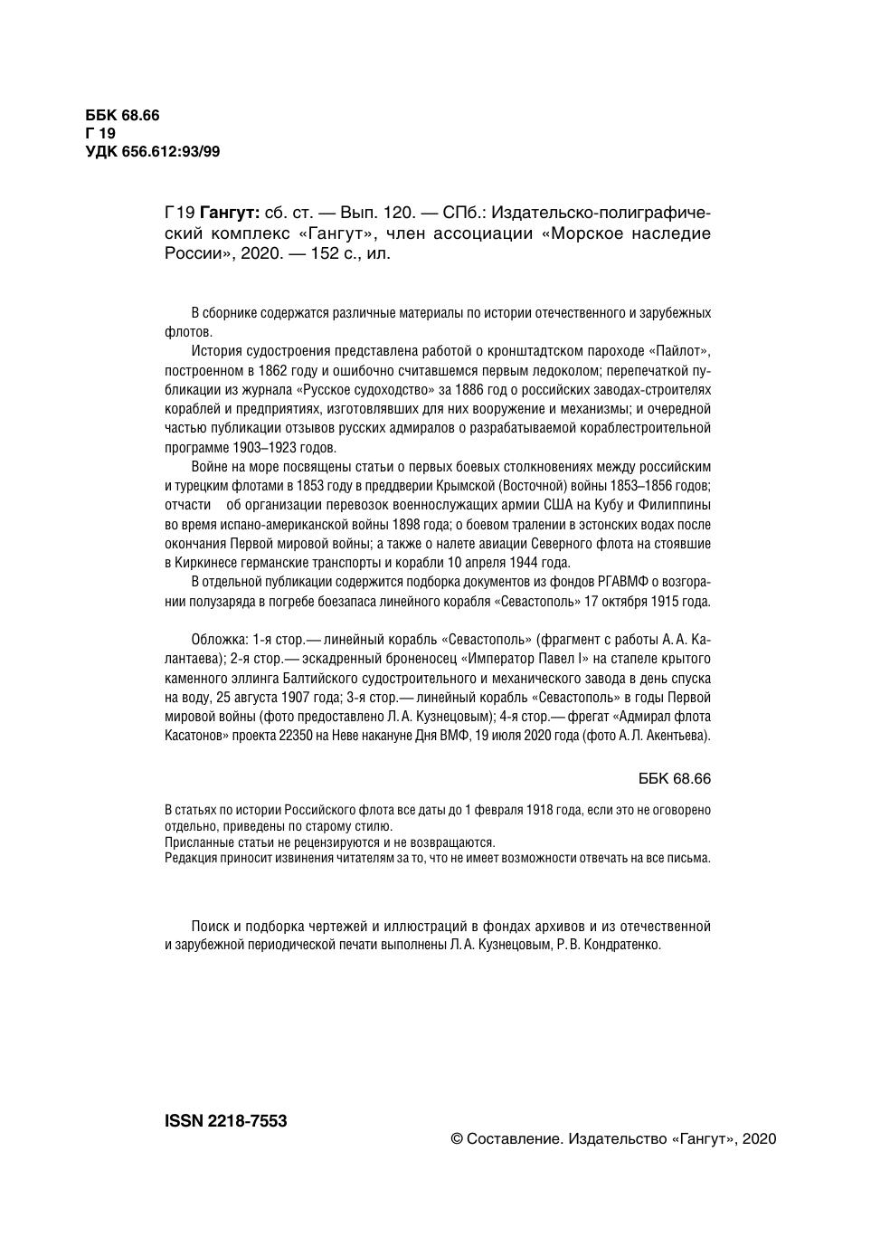 Научно-популярный сборник статей по истории флота и судостроения "Гангут". Выпуск № 120