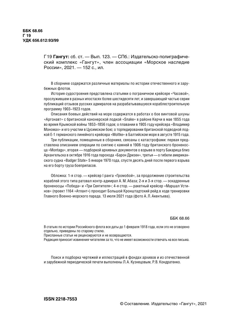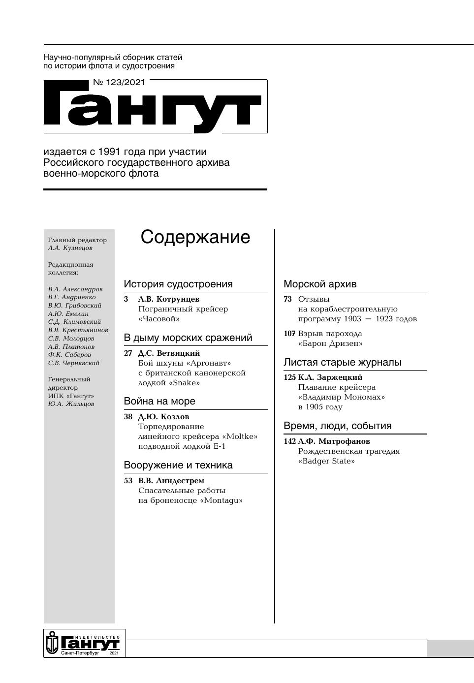 Научно-популярный сборник статей по истории флота и судостроения "Гангут". Выпуск № 123