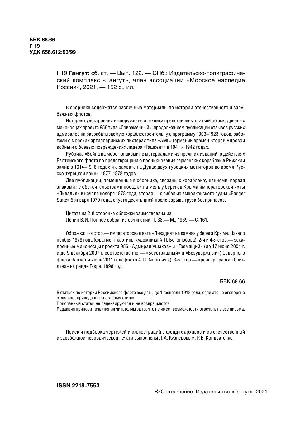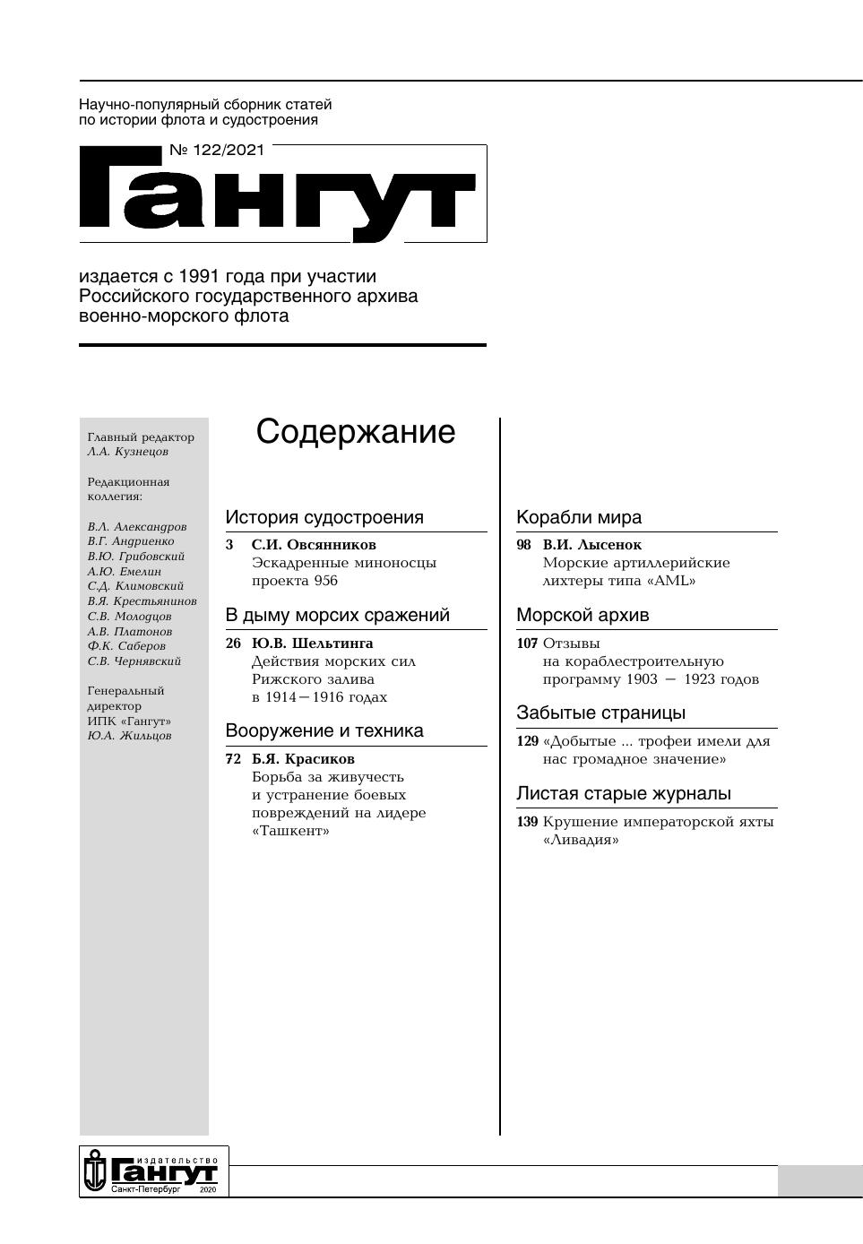 Научно-популярный сборник статей по истории флота и судостроения "Гангут". Выпуск № 122
