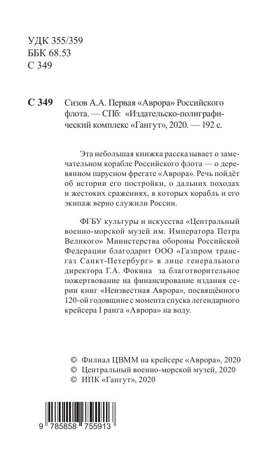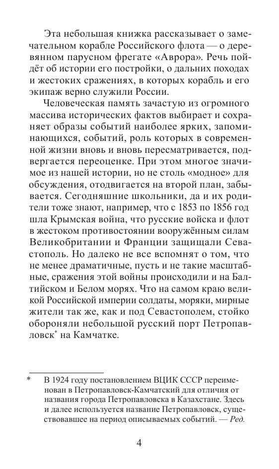 Эта небольшая книжка рассказывает о замечательном корабле Российского флота — о деревянном парусном фрегате «Аврора». Речь пойдёт об истории его постройки, о дальних походах и жестоких сражениях, в которых корабль и его экипаж верно служили России.