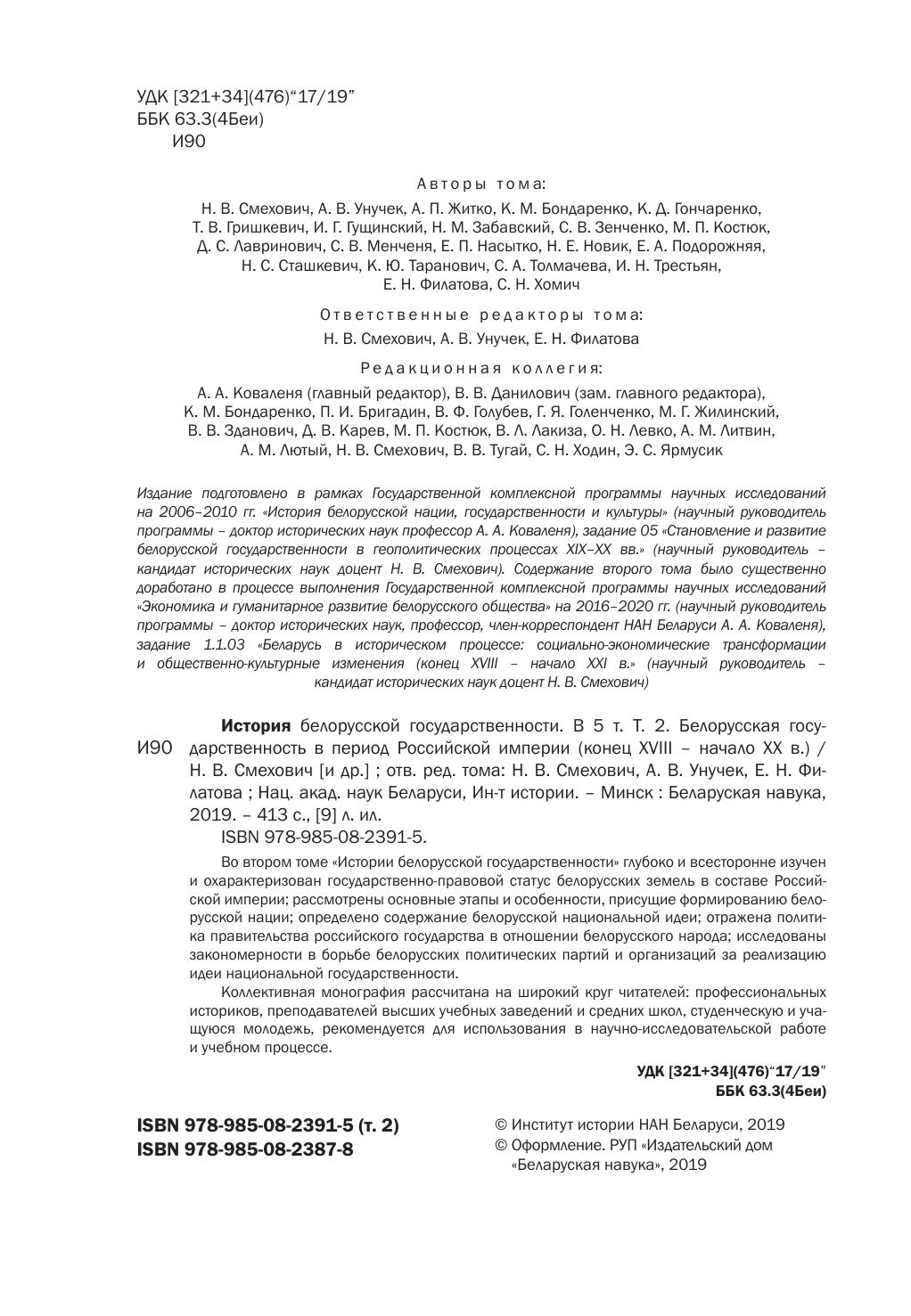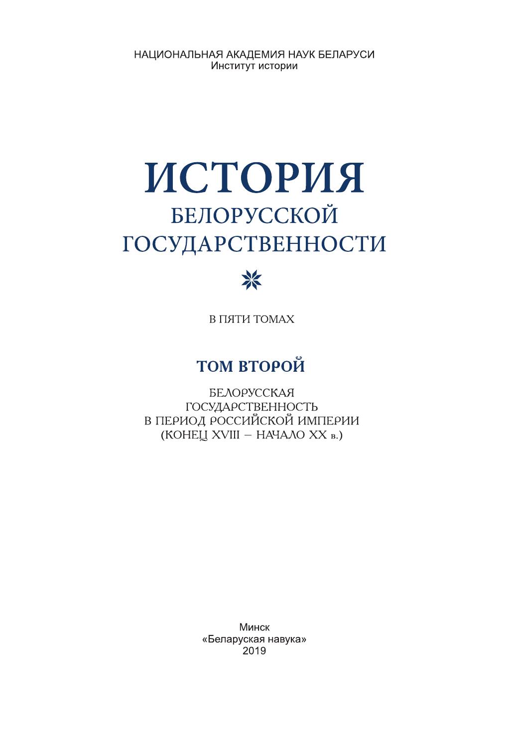 История белорусской государственности. В 5 т. Т. 2. Белорусская государственность в период Российской империи (конец XVIII – начало ХХ в.)