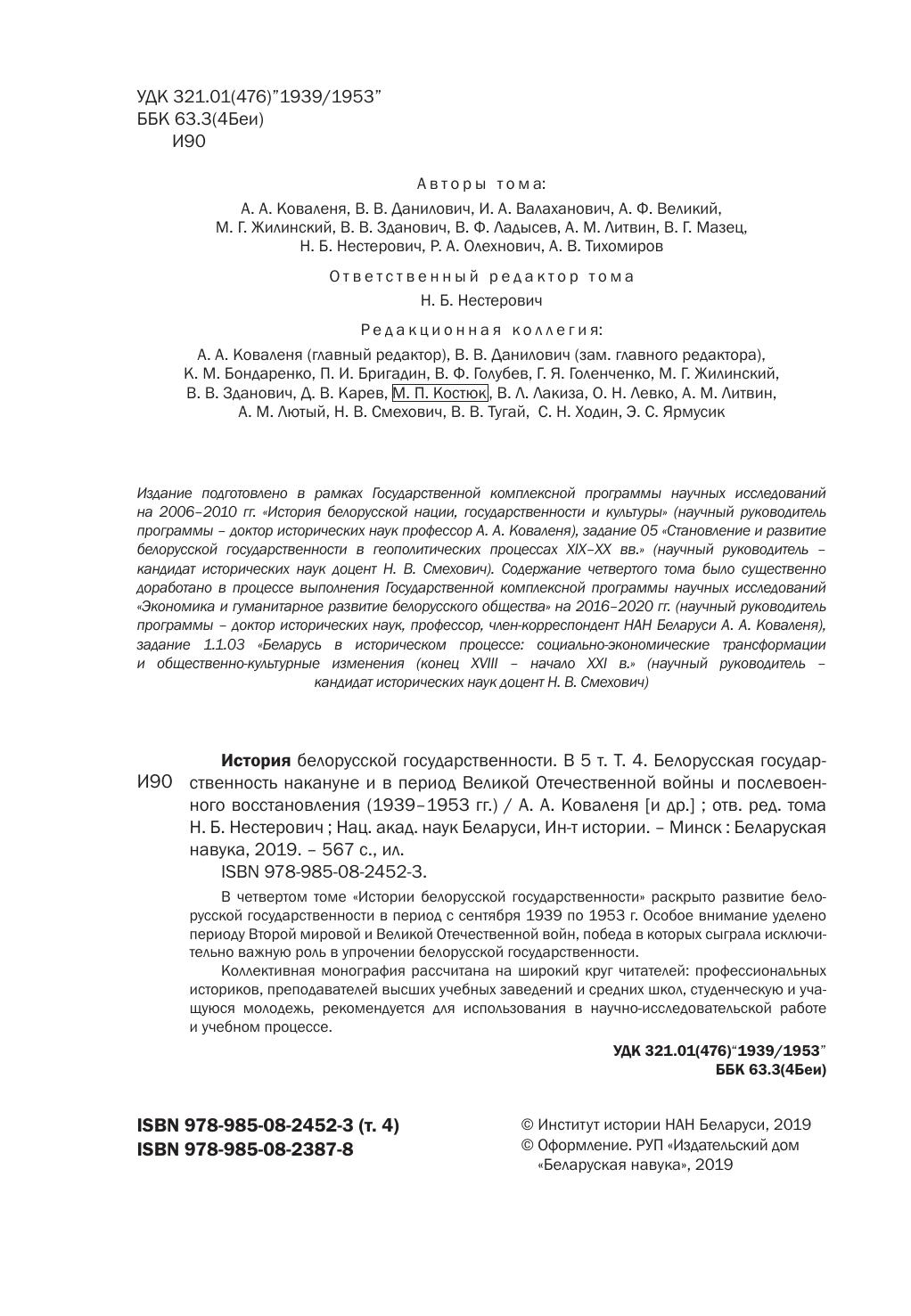 История белорусской государственности. В 5 т. Т. 4. Белорусская государственность накануне и в период Великой Отечественной войны и послевоенного восстановления (1939–1953 гг.)