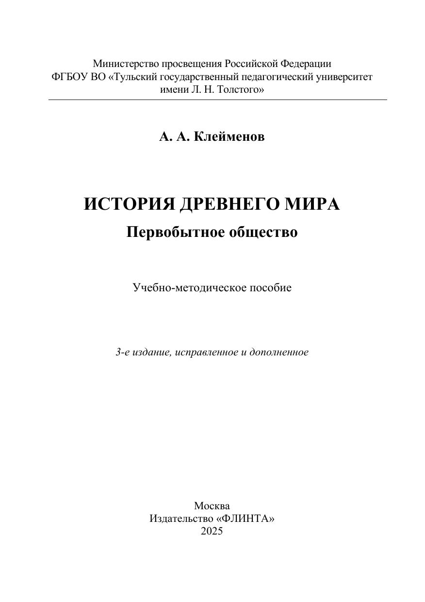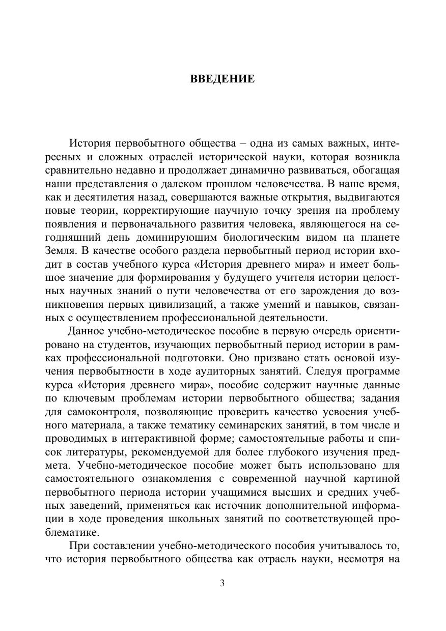 В пособии изложены основные проблемы истории первобытного общества в соответствии с современным уровнем развития науки, представлен методический материал, помогающий в усвоении содержания первого раздела дисциплины «История древнего мира». Издание адресовано студентам, изучающим первобытное общество в рамках профессиональной подготовки по направлению 44.03.05 «Педагогическое образование» (профиль «История»), студентам других специальностей для самостоятельного изучения первобытного периода истории человечества, а также учителям истории как источник дополнительной учебной информации.