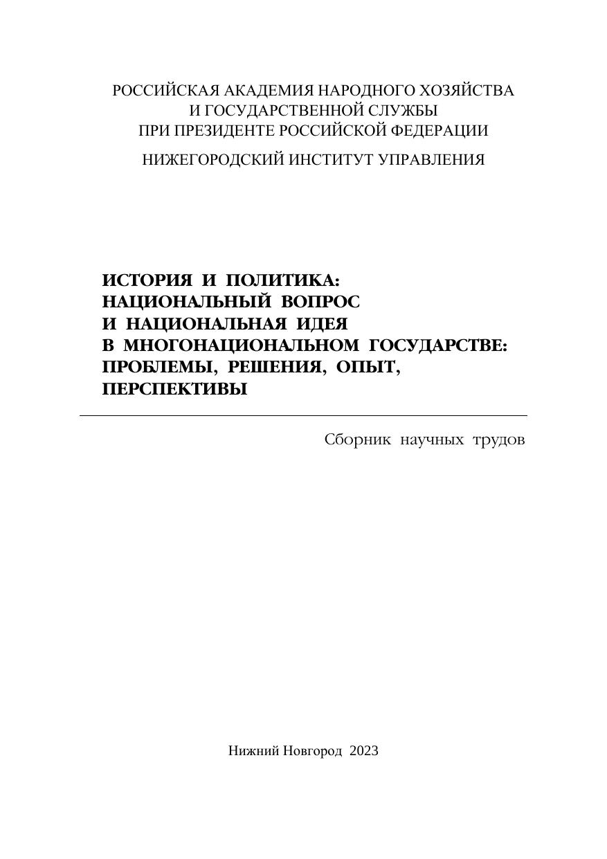 История и политика: Национальный вопрос и национальная идея в многонациональном государстве: проблемы, решения, опыт, перспективы: сборник научных трудов