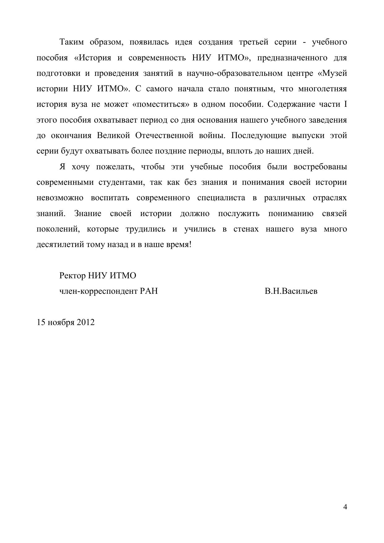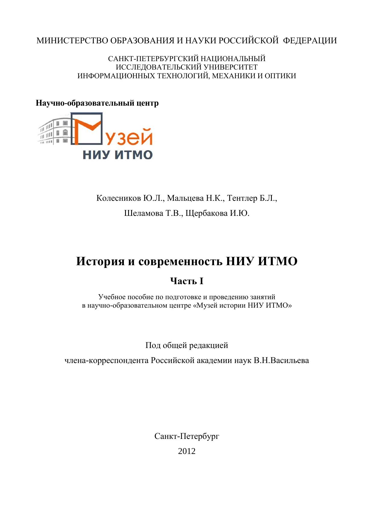 Настоящее пособие посвящено истории созданию и развитию НИУ ИТМО в форме экскурсий по экспозиции Музея истории университета. Пособие предназначено для преподавателей и студентов, материал может быть использован, наряду с ресурсами Виртуального музея (http://museum.ifmo.ru), при подготовке и проведении занятий по курсам «Введение в специальность», «История науки и современное естествознание». Часть I охватывает период со дня основания нашего учебного заведения до окончания Великой Отечественной войны. Включает описание основных этапов становления и развития вуза. Более поздняя история вуза будет представлена в последующих частях учебного пособия.