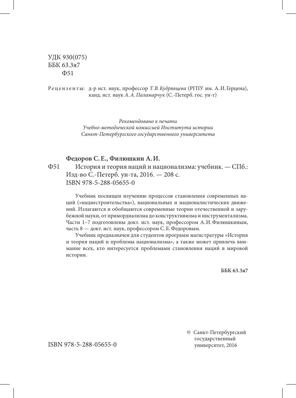 Учебник посвящен изучению процессов становления современных наций («нациестроительства»), национальных и националистических движений. Излагаются и обобщаются современные теории отечественной и зарубежной науки, от примордиализма до конструктивизма и инструментализма. Части 1–7 подготовлены докт. ист. наук, профессором А. И. Филюшкиным, часть 8 — докт. ист. наук, профессором С. Е. Федоровым. Учебник предназначен для студентов программ магистратуры «История и теория наций и проблемы национализма», а также может привлечь внимание всех, кто интересуется проблемами становления наций в мировой истории.