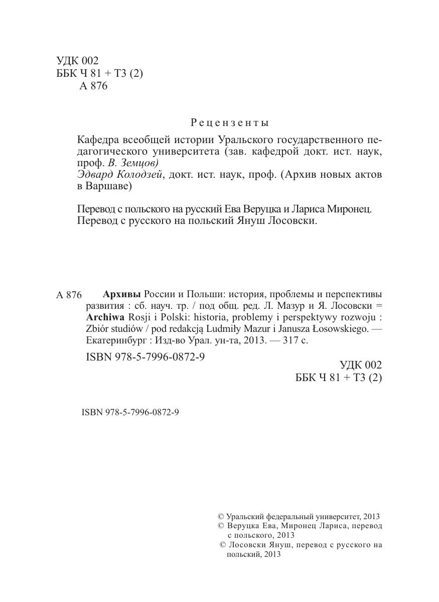Архивы России и Польши: история, проблемы и перспективы развития : сб. науч. тр.