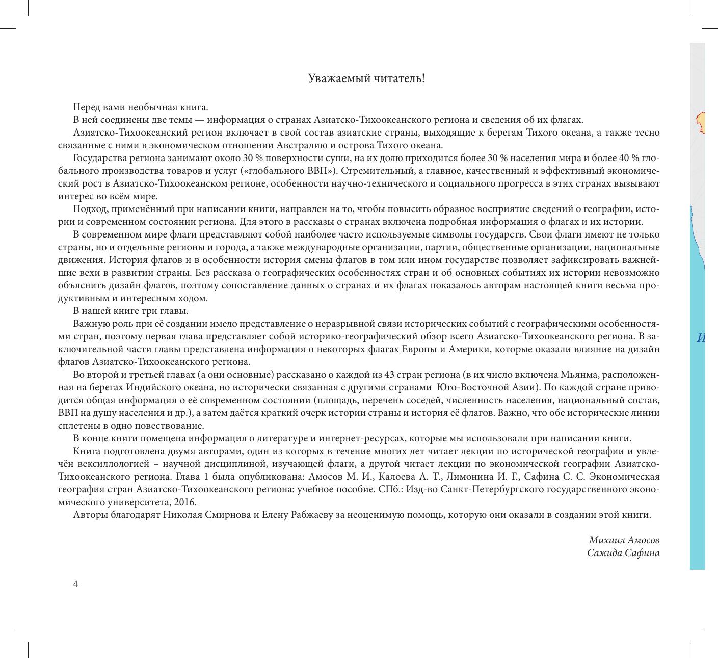В книге дается обзор развития Азиатско-Тихоокеанского региона от древнейших этапов его освоения человеком до современности, а также представлен актуальный справочный материал о 43 странах Восточной и Юго-Восточной Азии, Австралии и Океании с кратким обзором их истории, представленной через историю флагов каждой территории. Издание, рассчитанное на широкий круг читателей, также может использоваться в качестве учебного пособия при профессиональной подготовке будущих географов, историков, востоковедов, специалистов в сфере туризма и международных отношений.