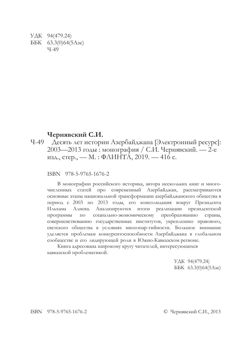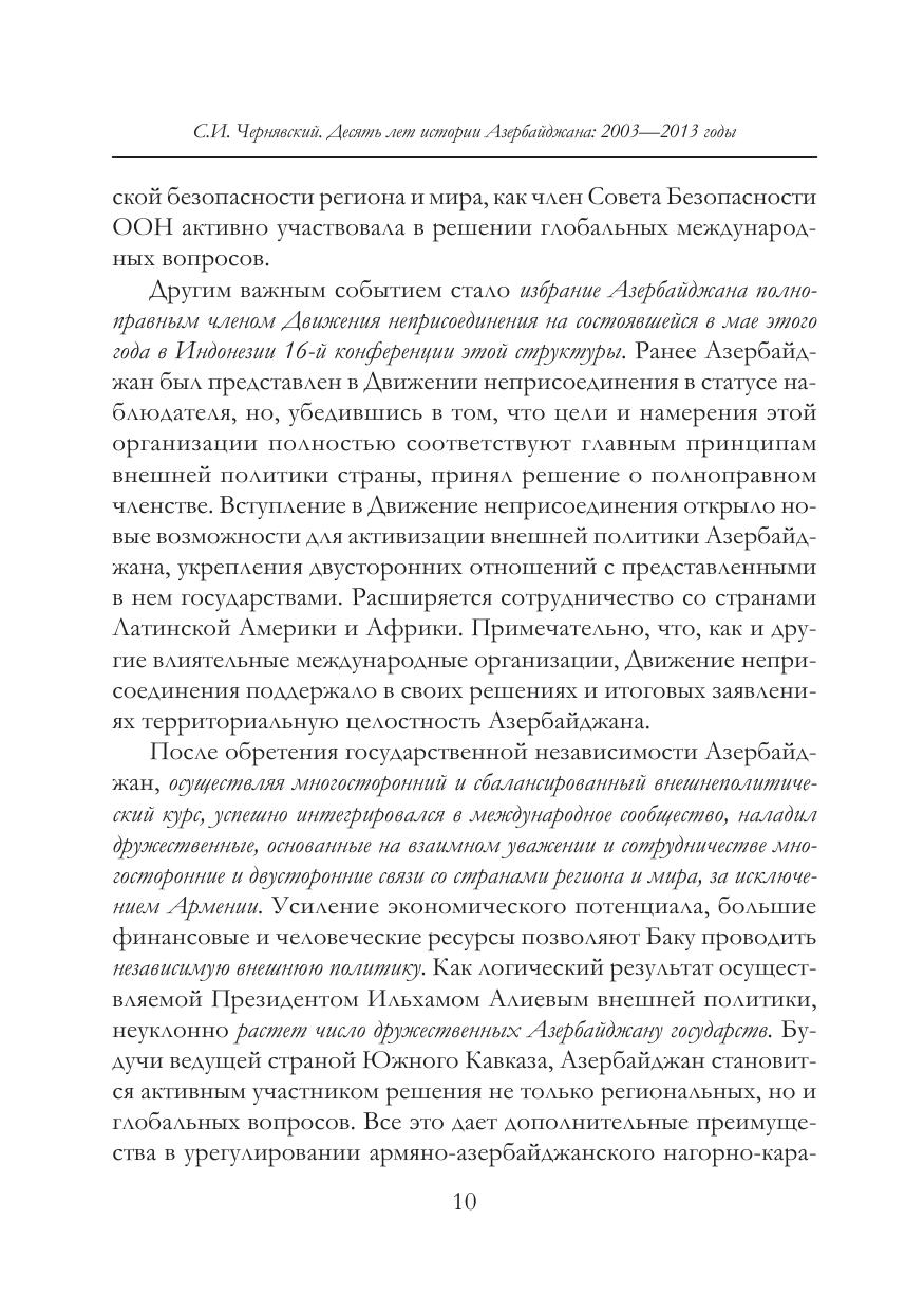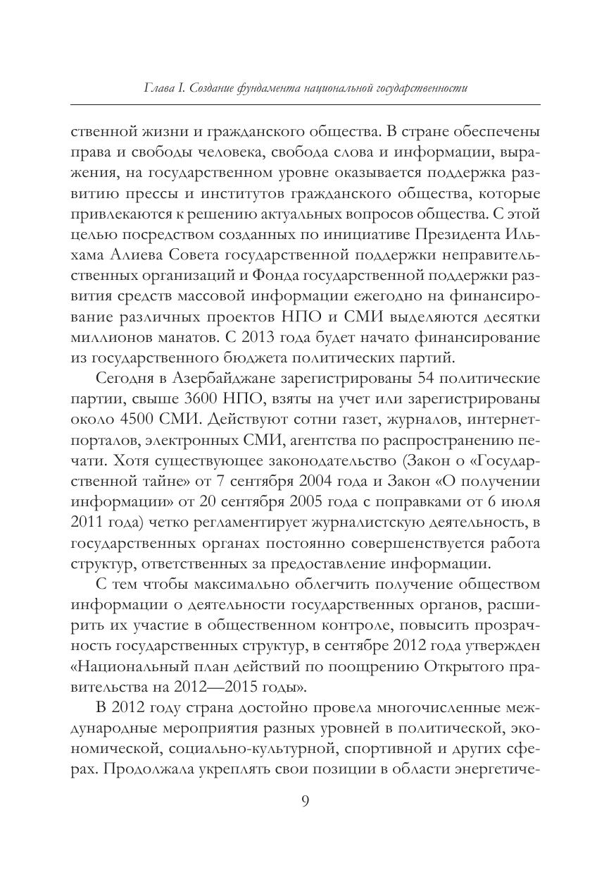 В монографии российского историка, автора нескольких книг и многочисленных статей про современный азербайджан, рассматриваются основные этапы национальной трансформации азербайджанского общества в период с 2003 по 2013 годы, его консолидация вокруг Президента Ильхама алиева. анализируются итоги реализации президентской программы по социально-экономическому преобразованию страны, совершенствованию государственных институтов, укреплению правового, светского общества в условиях многопар-тийности. Большое внимание уделяется проблемам конкурентоспособности азербайджана в глобальном сообществе и его лидирующей роли в Южно-Кавказском регионе.