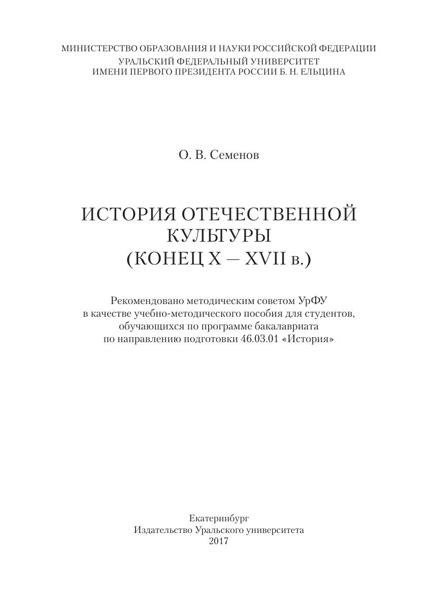 История отечественной культуры (конец X — XVII в.)