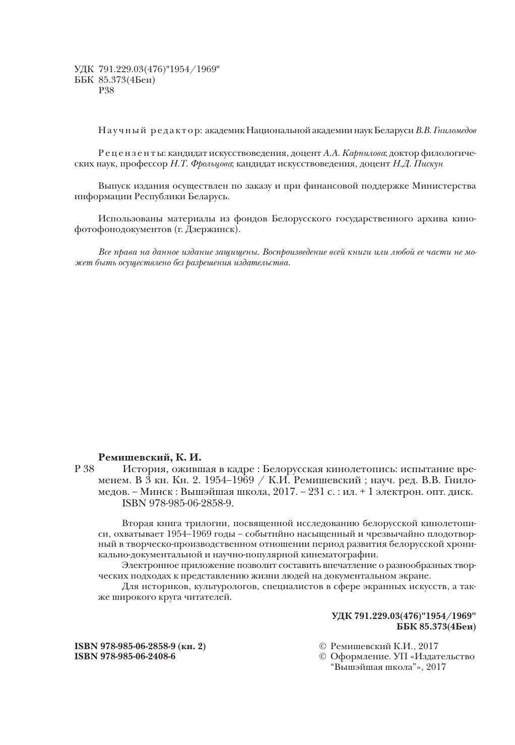История, ожившая в кадре : Белорусская кинолетопись: испытание временем. В 3 кн. Кн. 2. 1954–1969