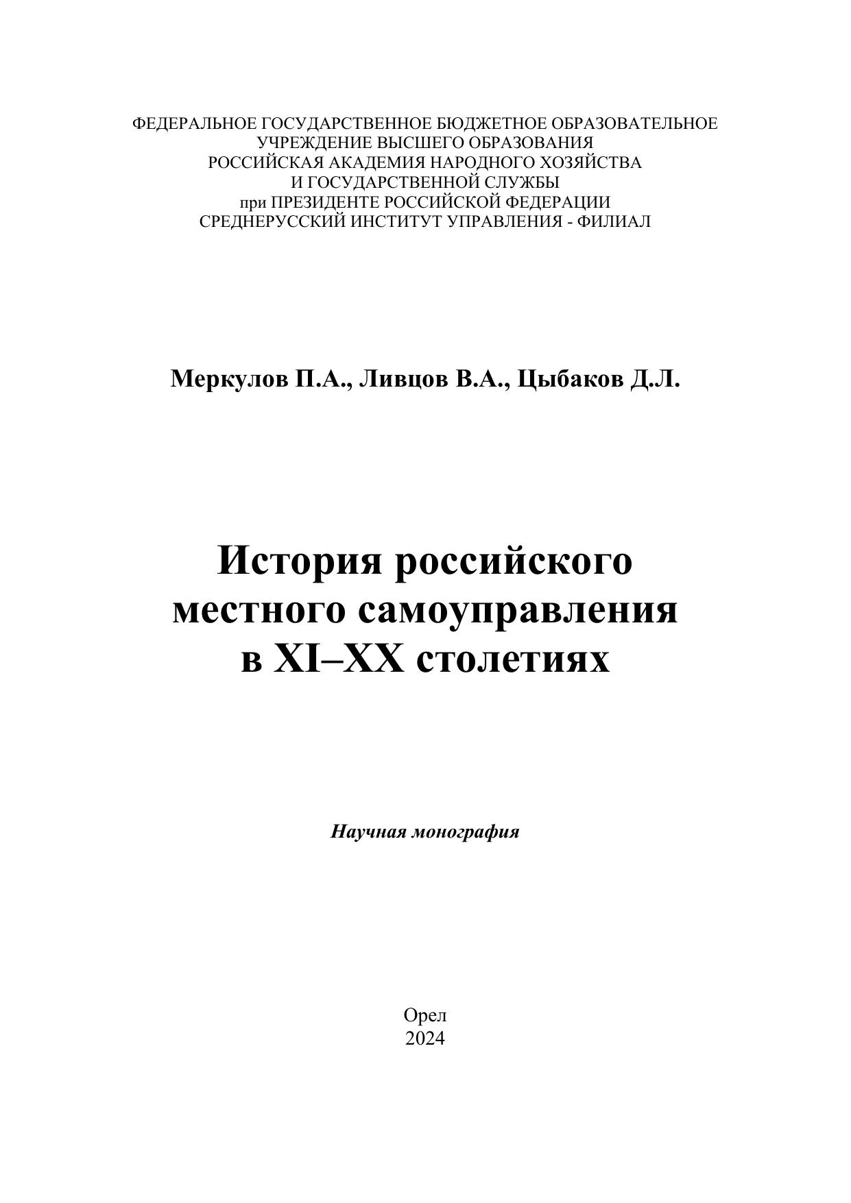История российского местного самоуправления в XI–XX столетиях