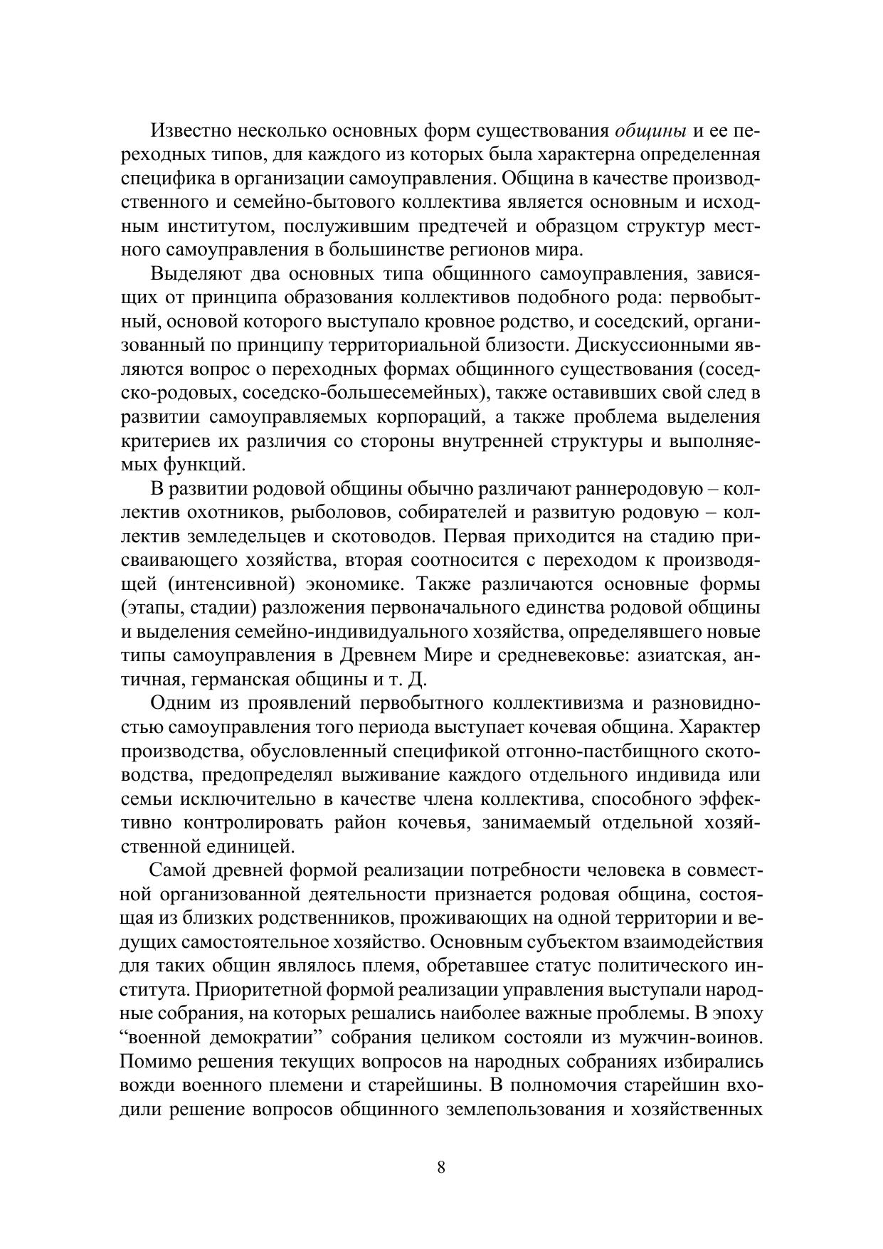 В научной монографии представлен анализ истории развития местного самоуправления в российском государстве. Авторами исследуется сущность трансформаций института общинного самоуправления в условиях феодальной государственности и перехода к индустриальному обществу. Рассматривается процесс реформирования сословного и общинного управления со стороны государственной власти Русского централизованного государства и Российской империи. Особенное место отводится освещению формирования советской модели местного управления в ХХ столетии и ее демонтажу в постсоветский период. Рекомендуется для студентов, аспирантов, ученых, занятых в исследованиях Отечественной истории.