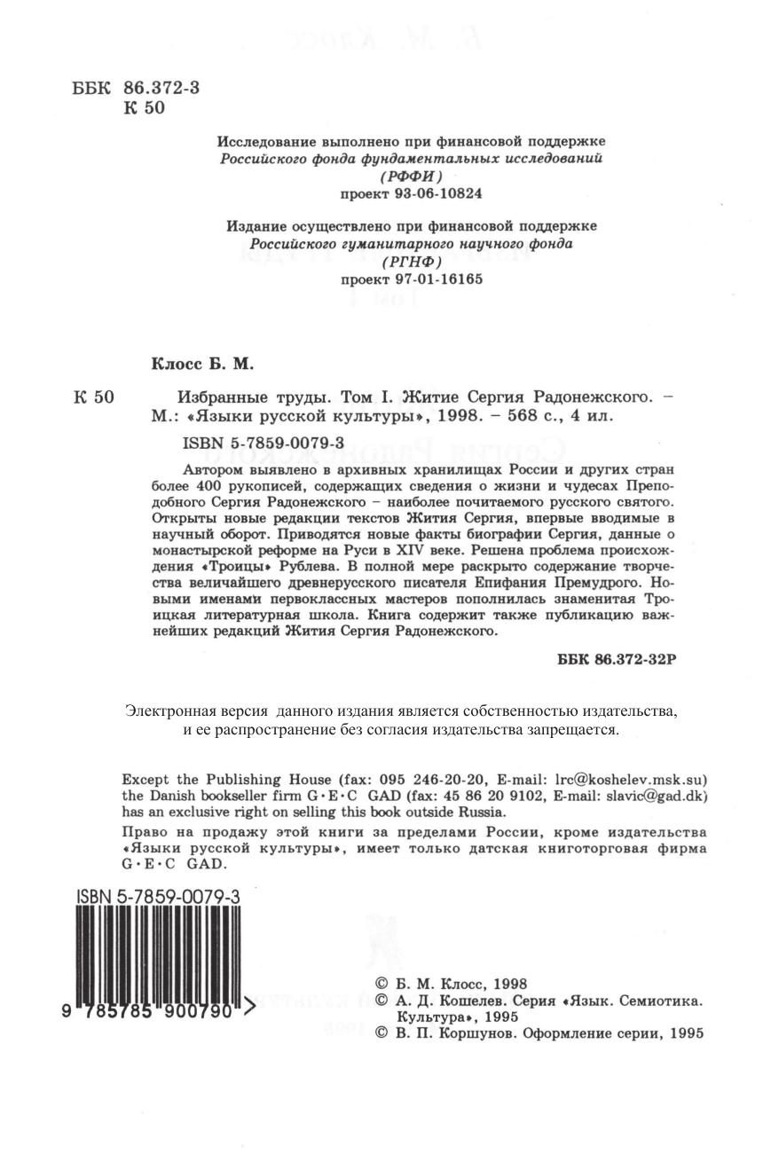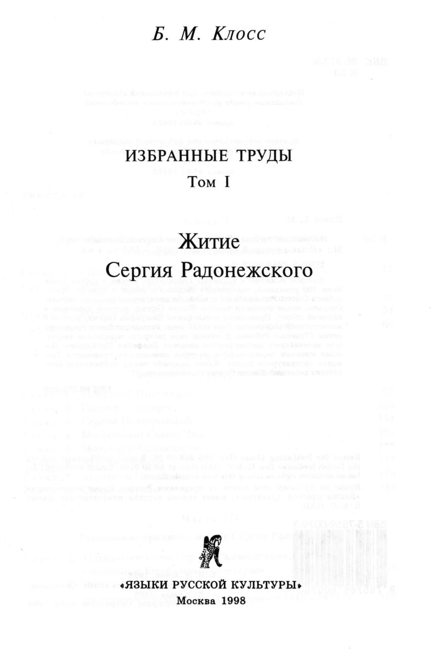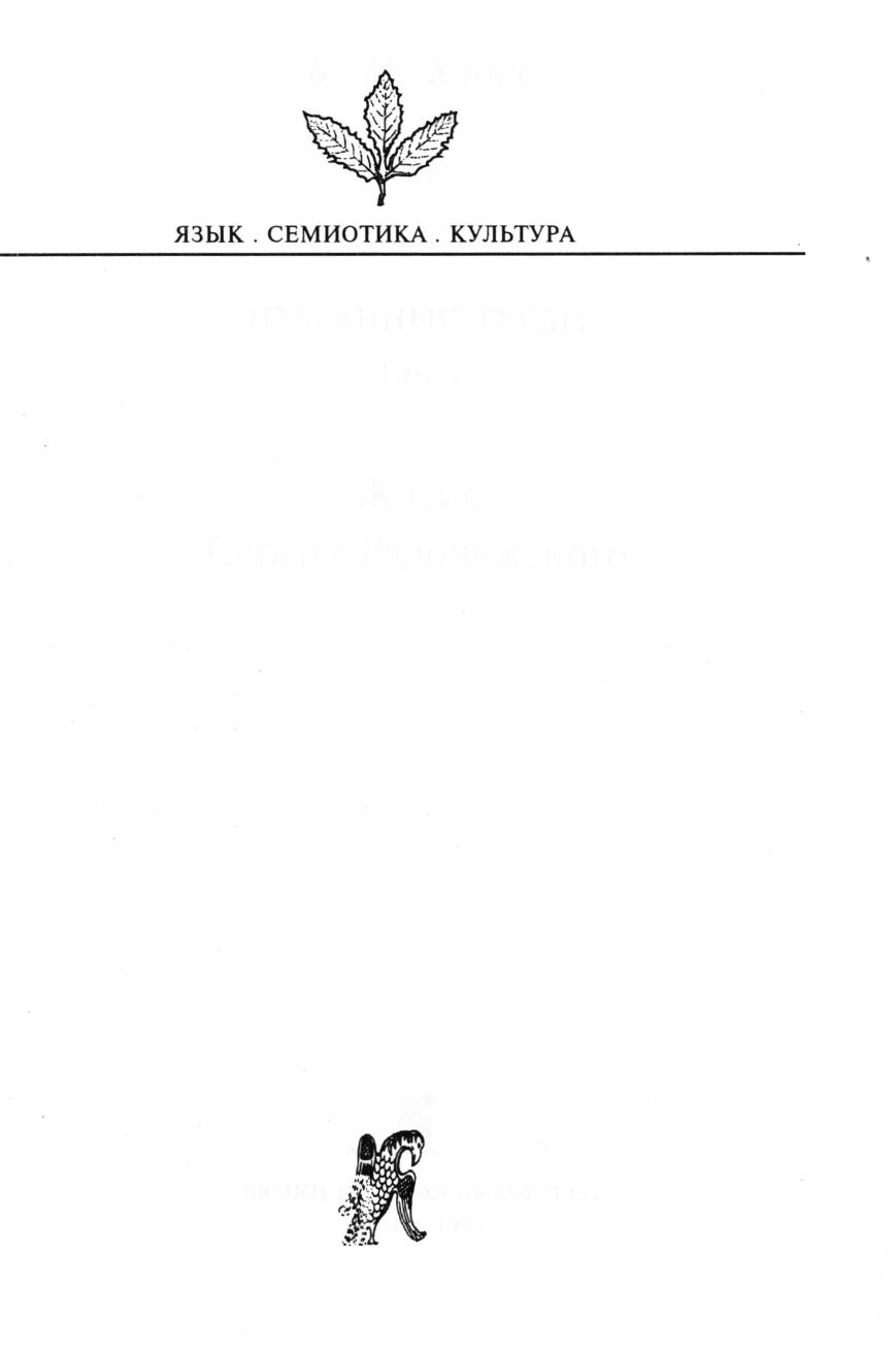 Избранные труды. Т. I. Житие Сергия Радонежского
