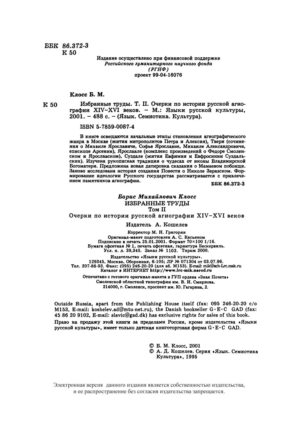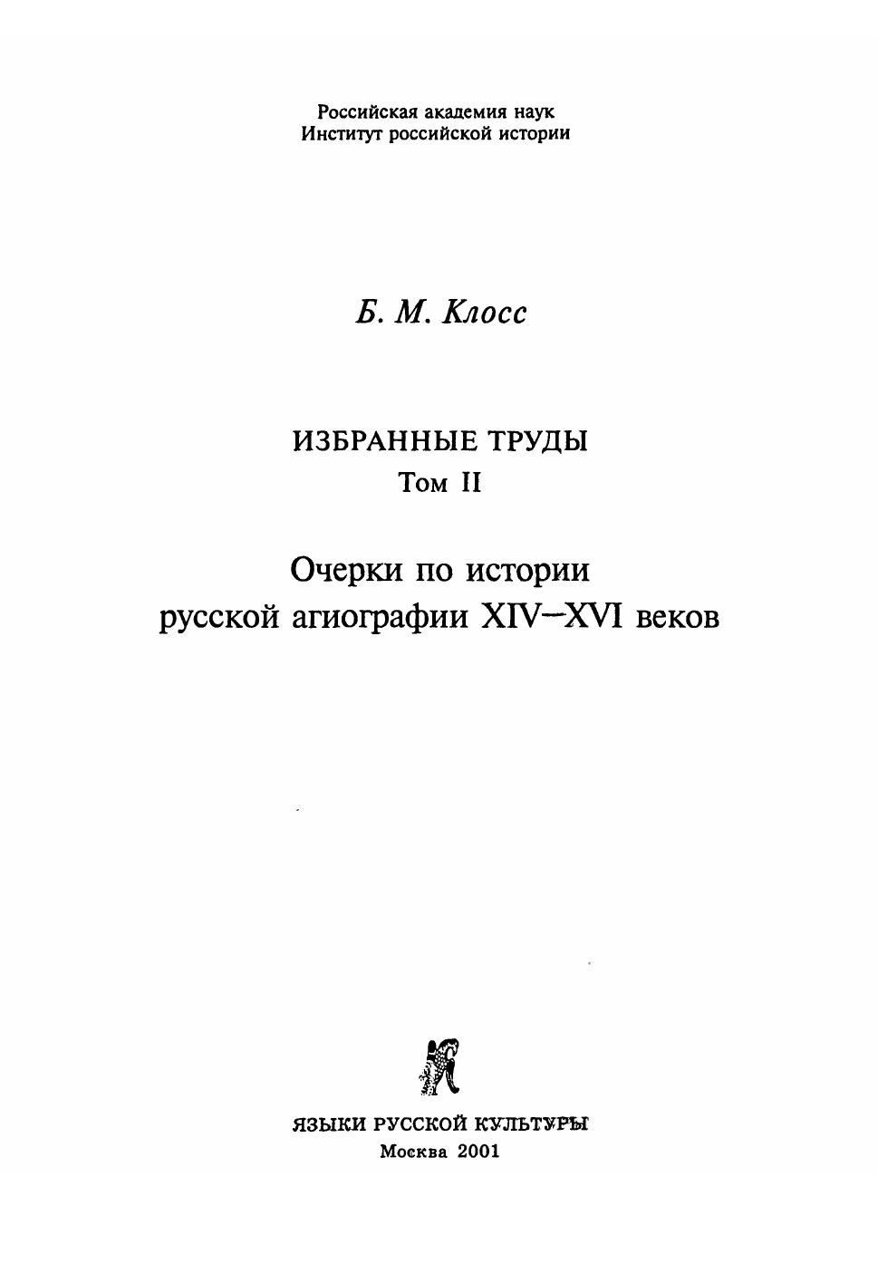 Избранные труды. Т. II. Очерки по истории русской агиографии XIV–XVI вв.