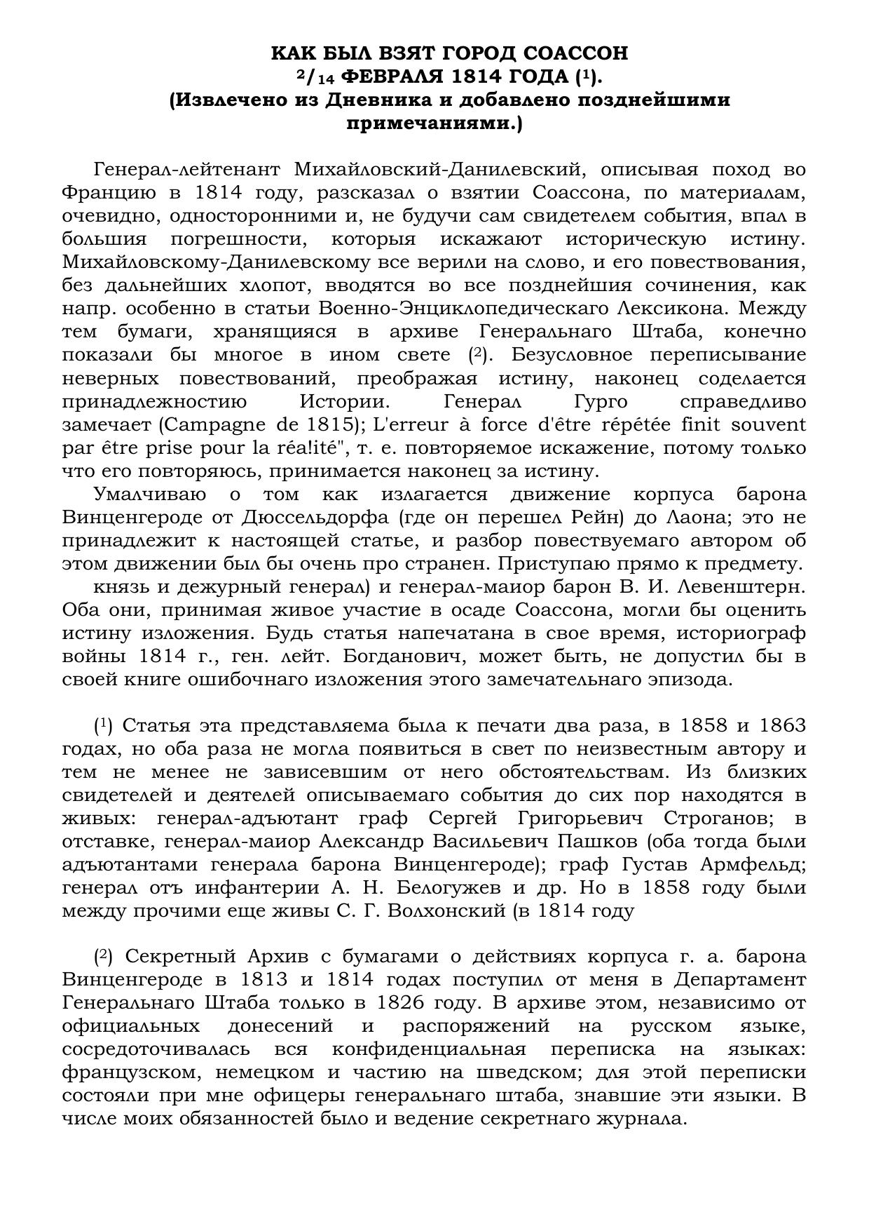 Как был взят город Соассон 2/14 февраля 1814 года.