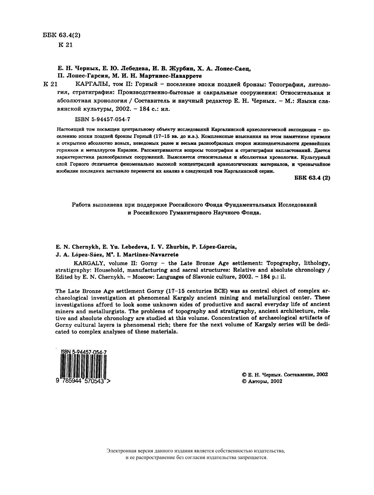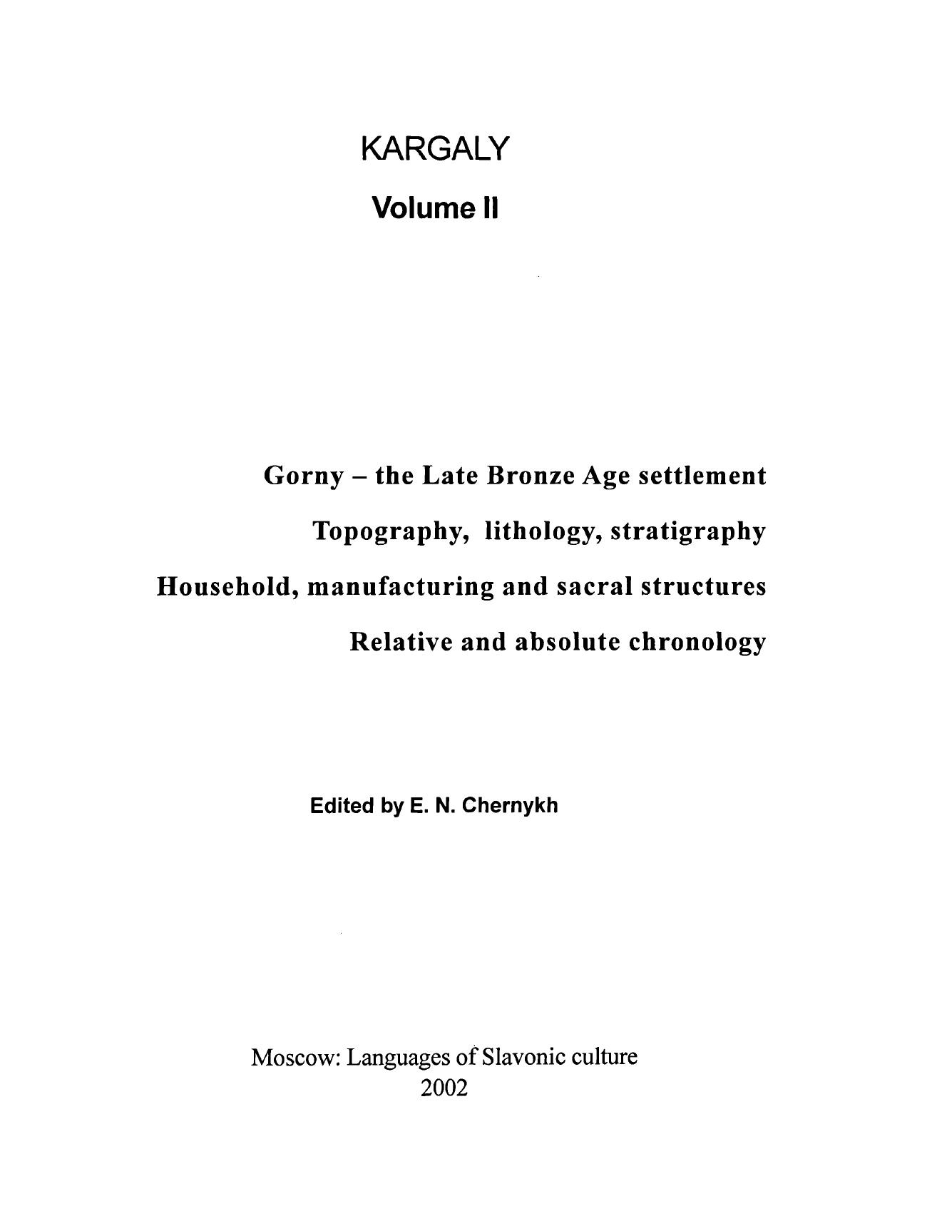 Каргалы. Т. II: Горный - поселение эпохи поздней бронзы. Топография, литология, стратиграфия. Производственно-бытовые и сакральные сооружения. Относительная и абсолютная хронология