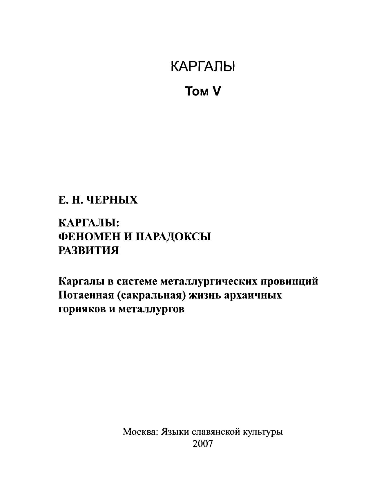 Каргалы. Т. V: Каргалы: феномен и парадоксы развития. Каргалы в системе металлургических провинций. Потаенная (сакральная) жизнь архаичных горняков и металлургов