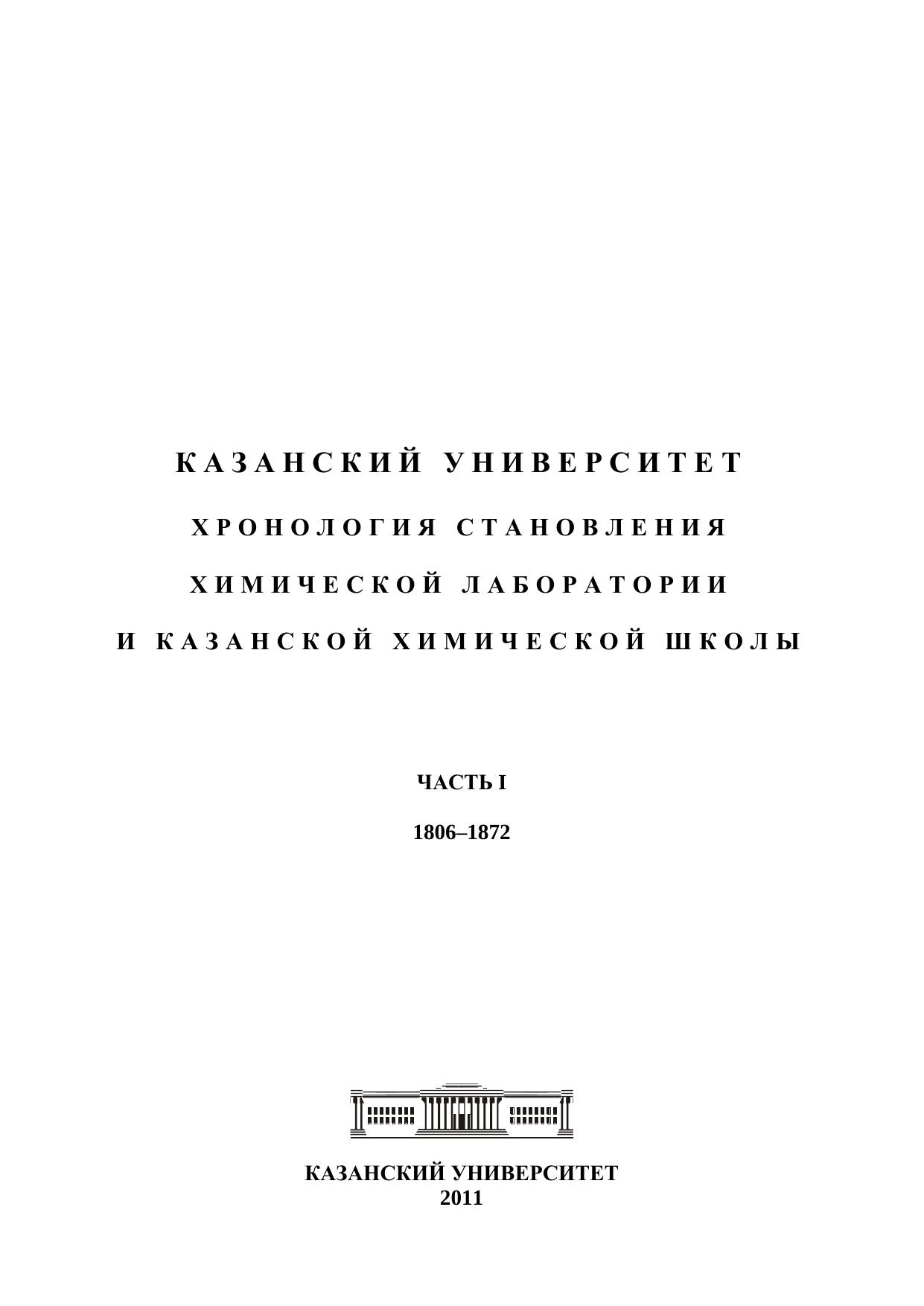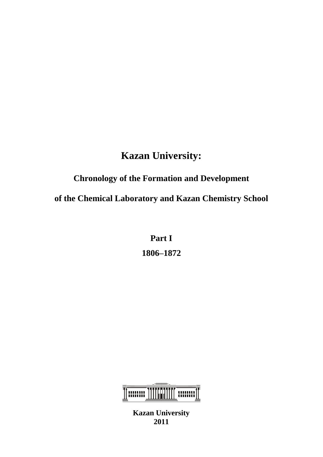 Казанский университет: хронология становления химической лаборатории и Казанской химической школы. 1806–1872. Часть 1