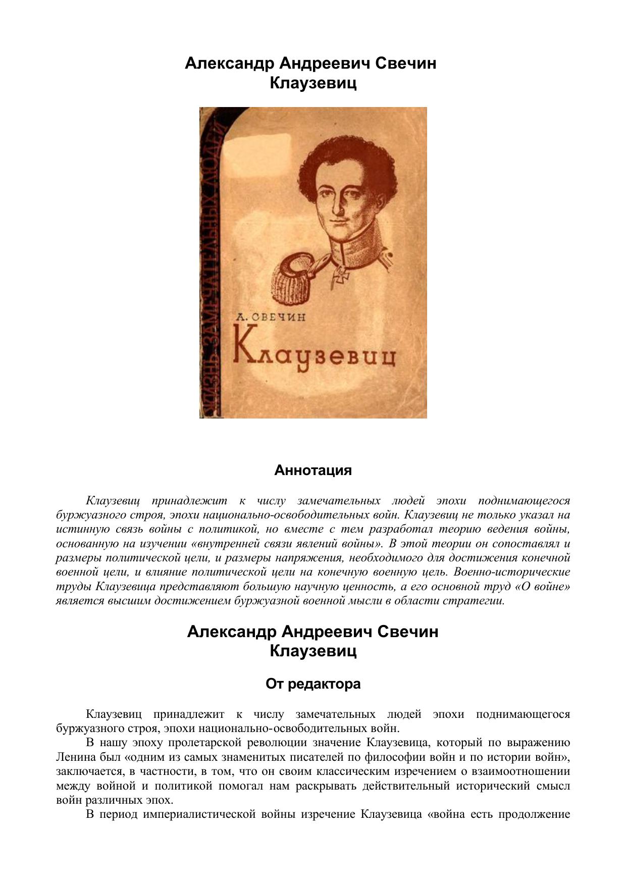 Клаузевиц. — М.: Журн.-газ. об-ние, 1935. — 288 с.: ил. — (Жизнь замечат. людей. Сер. биогр. Вып. 13—14 (61—62)).