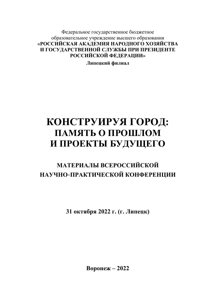 Конструируя город: память о прошлом и проекты будущего: материалы Всероссийской научно-практической конференции. 31 октября 2022 г. (г. Липецк)