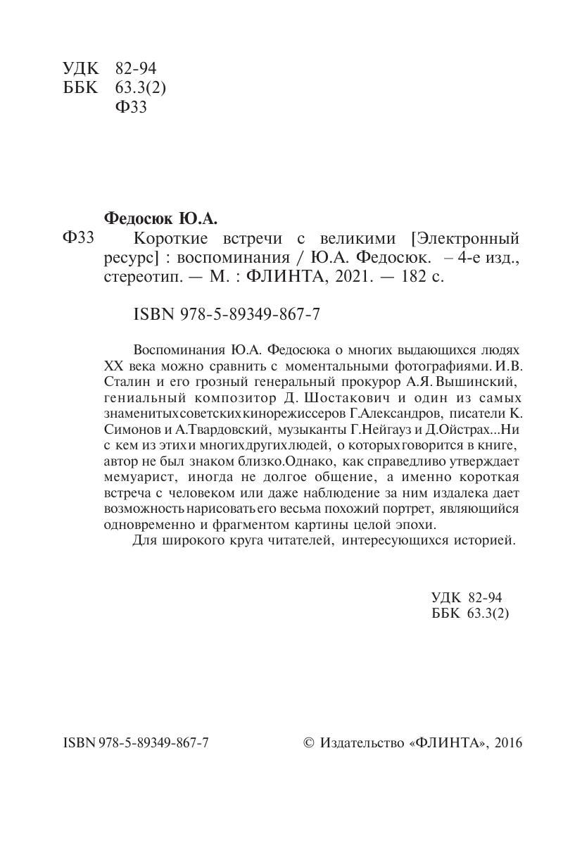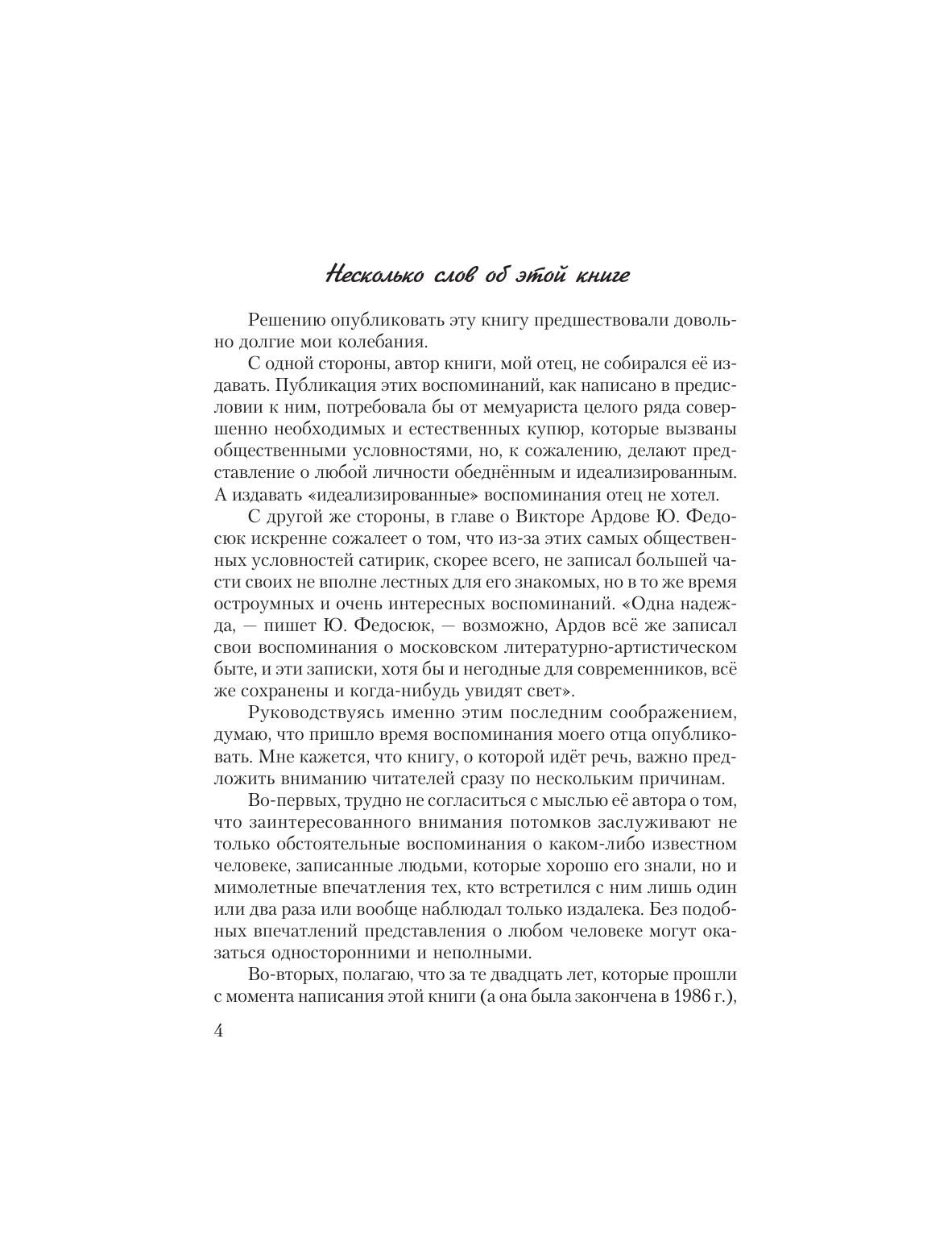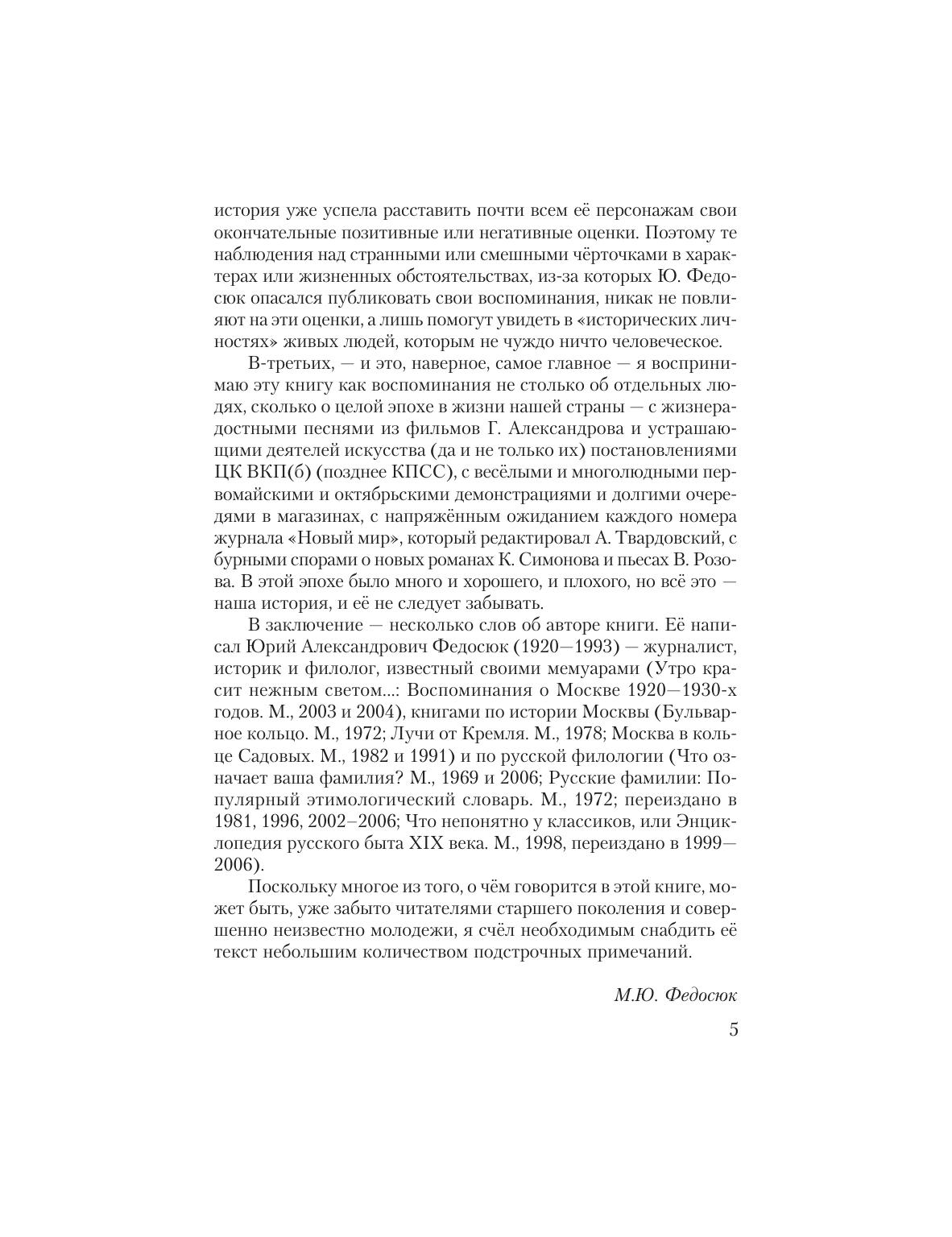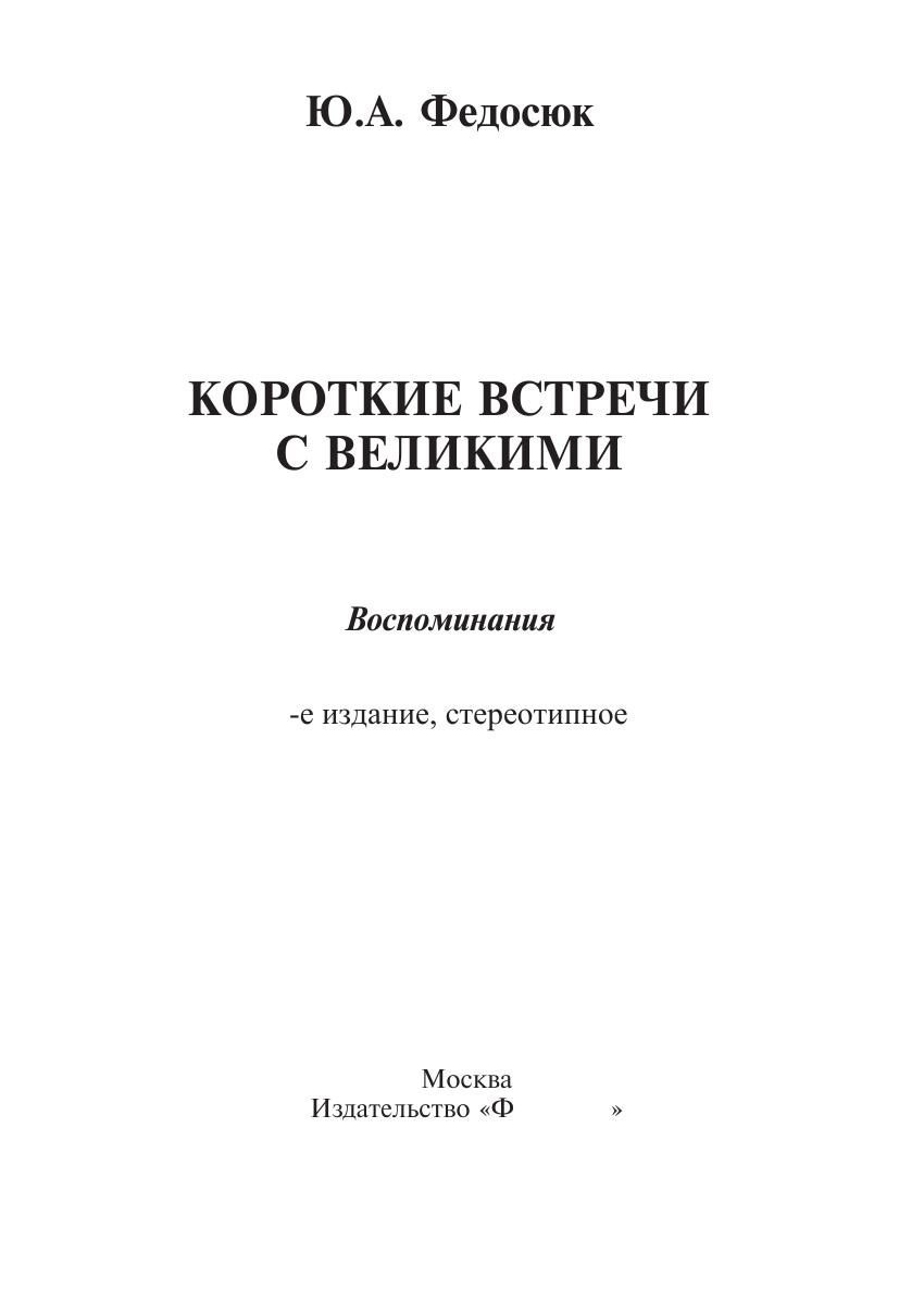Воспоминания Ю.А. Федосюка о многих выдающихся людях ХХ века можно сравнить с моментальными фотографиями. И.В. Сталин и его грозный генеральный прокурор А.Я. Вышинский, гениальный композитор Д. Шостакович и один из самых знаменитых советских кинорежиссеров Г. Александров, писатели К. Симонов и А. Твардовский, музыканты Г. Нейгауз и Д. Ойстрах... Ни с кем из этих и многих других людей, о которых говорится в книге, автор не был знаком близко. Однако, как справедливо утверждает мемуарист, иногда не долгое общение, а именно короткая встреча с человеком или даже наблюдение за ним издалека дает возможность нарисовать его весьма похожий портрет, являющийся одновременно и фрагментом картины целой эпохи. Для широкого круга читателей, интересующихся историей.