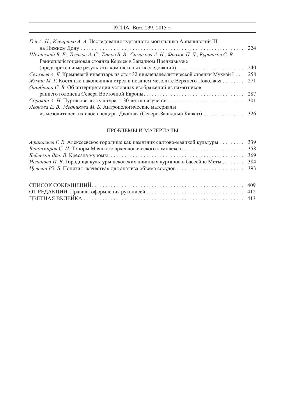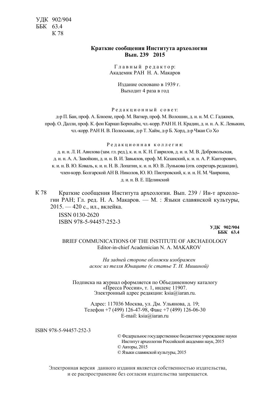 Краткие сообщения Института археологии Вып. 239