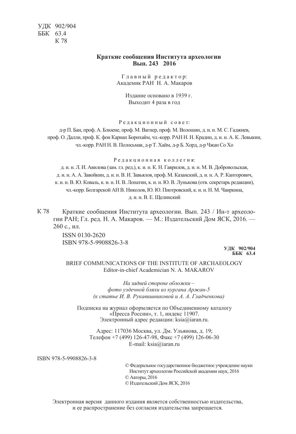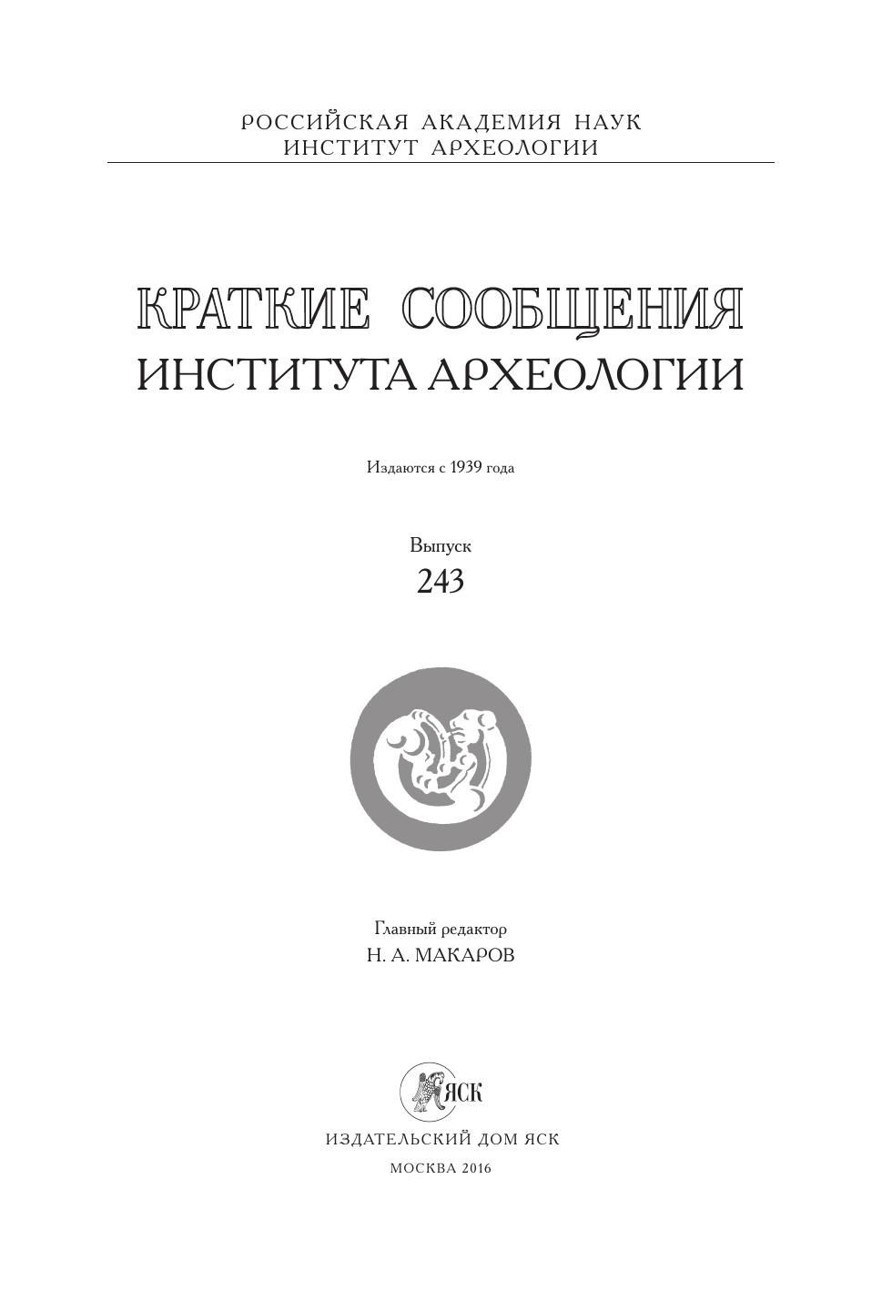 Краткие сообщения Института археологии Вып. 243