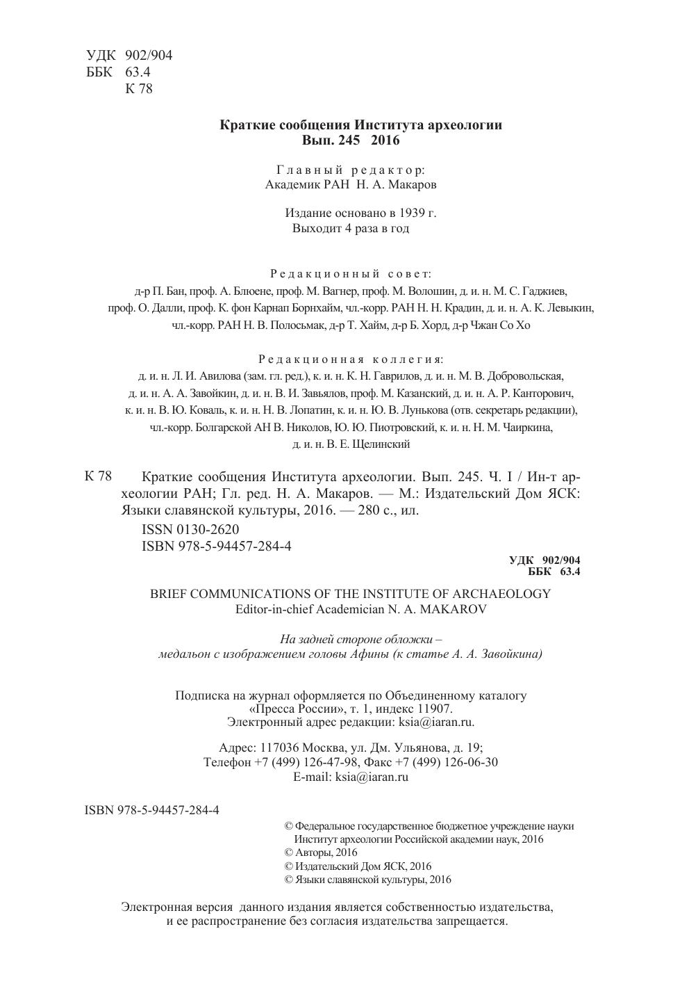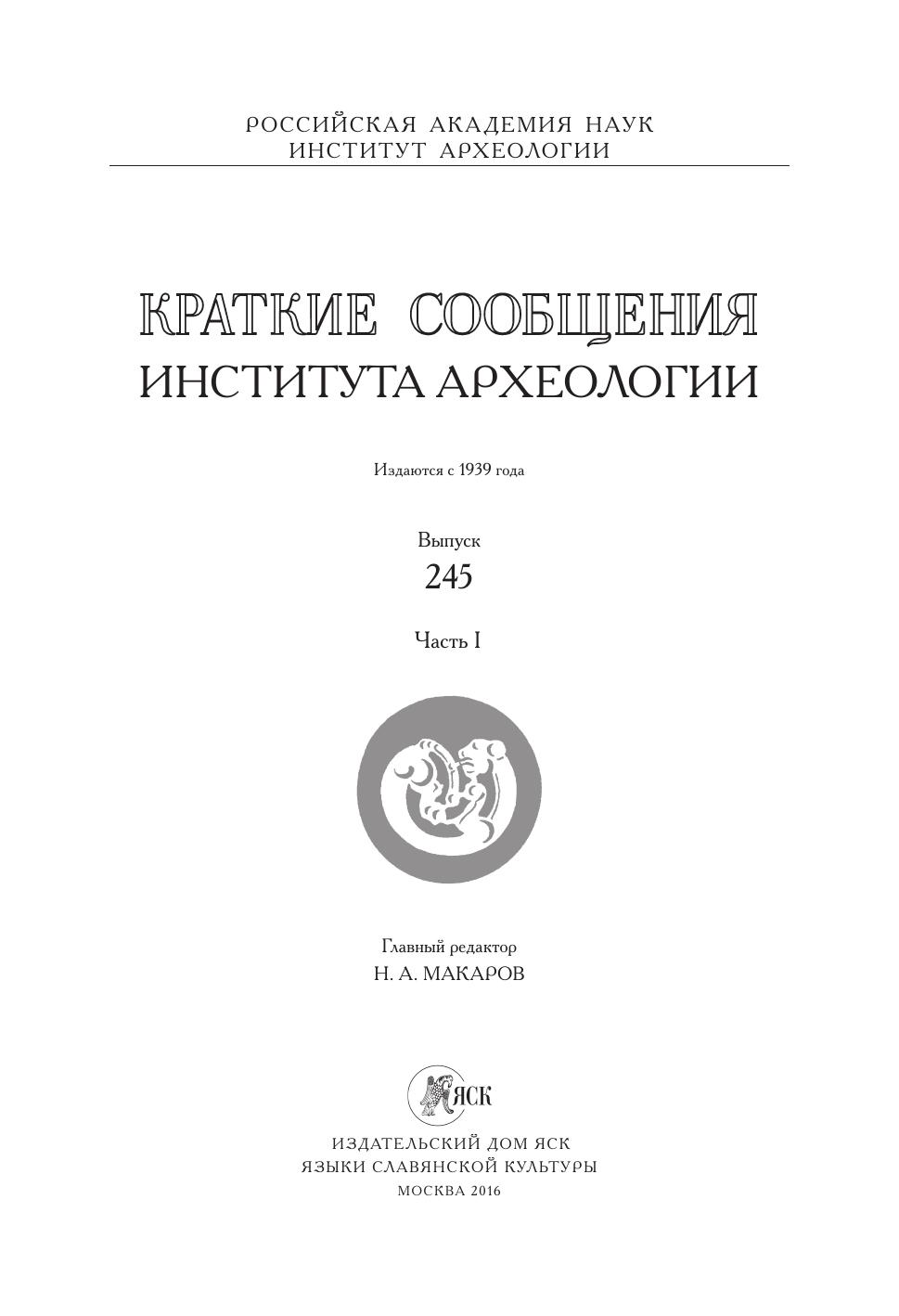 Краткие сообщения Института археологии Вып. 245-1