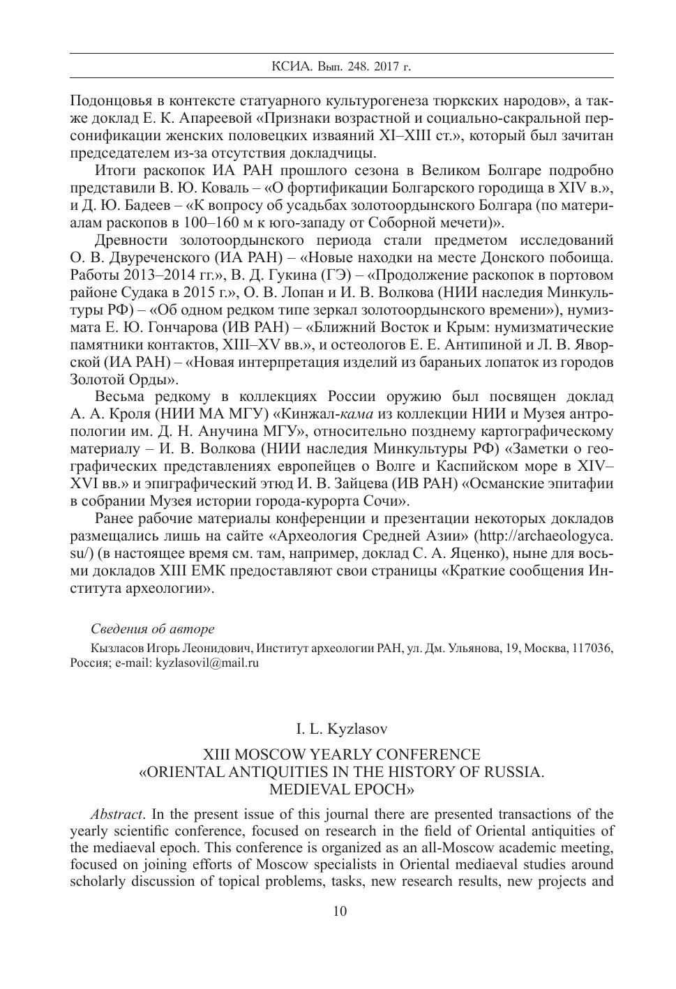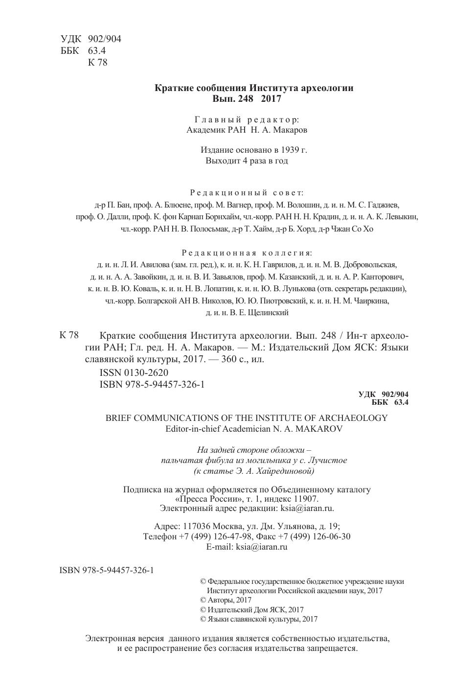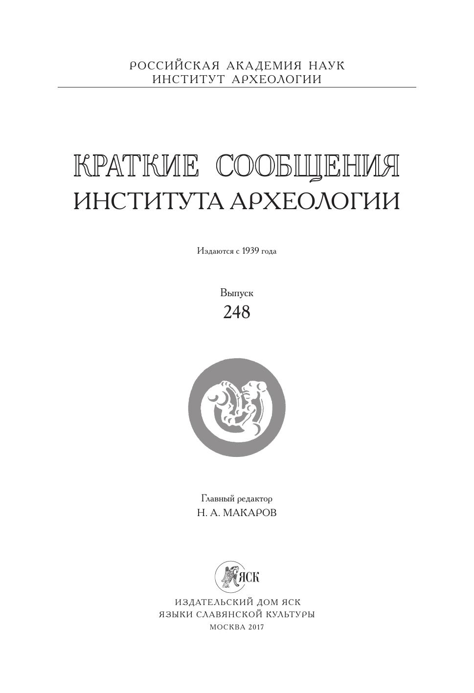 Краткие сообщения Института археологии Вып. 248