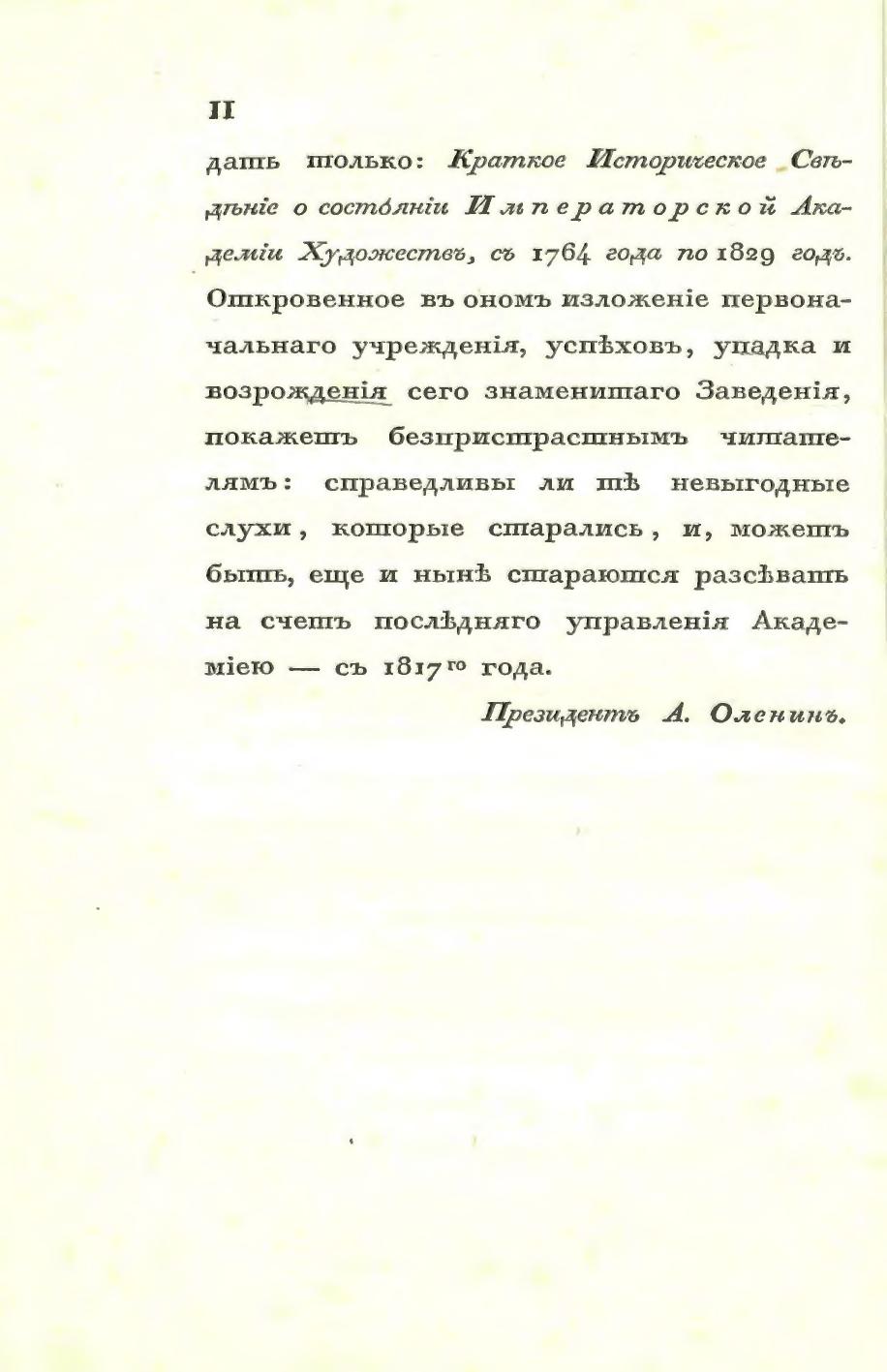 Краткое историческое сведение о состоянии Императорской Академии Художеств с 1764 по 1829 год.