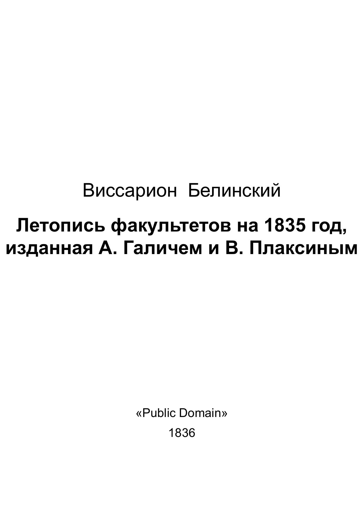Летопись факультетов на 1835 год, изданная А. Галичем и В. Плаксиным
