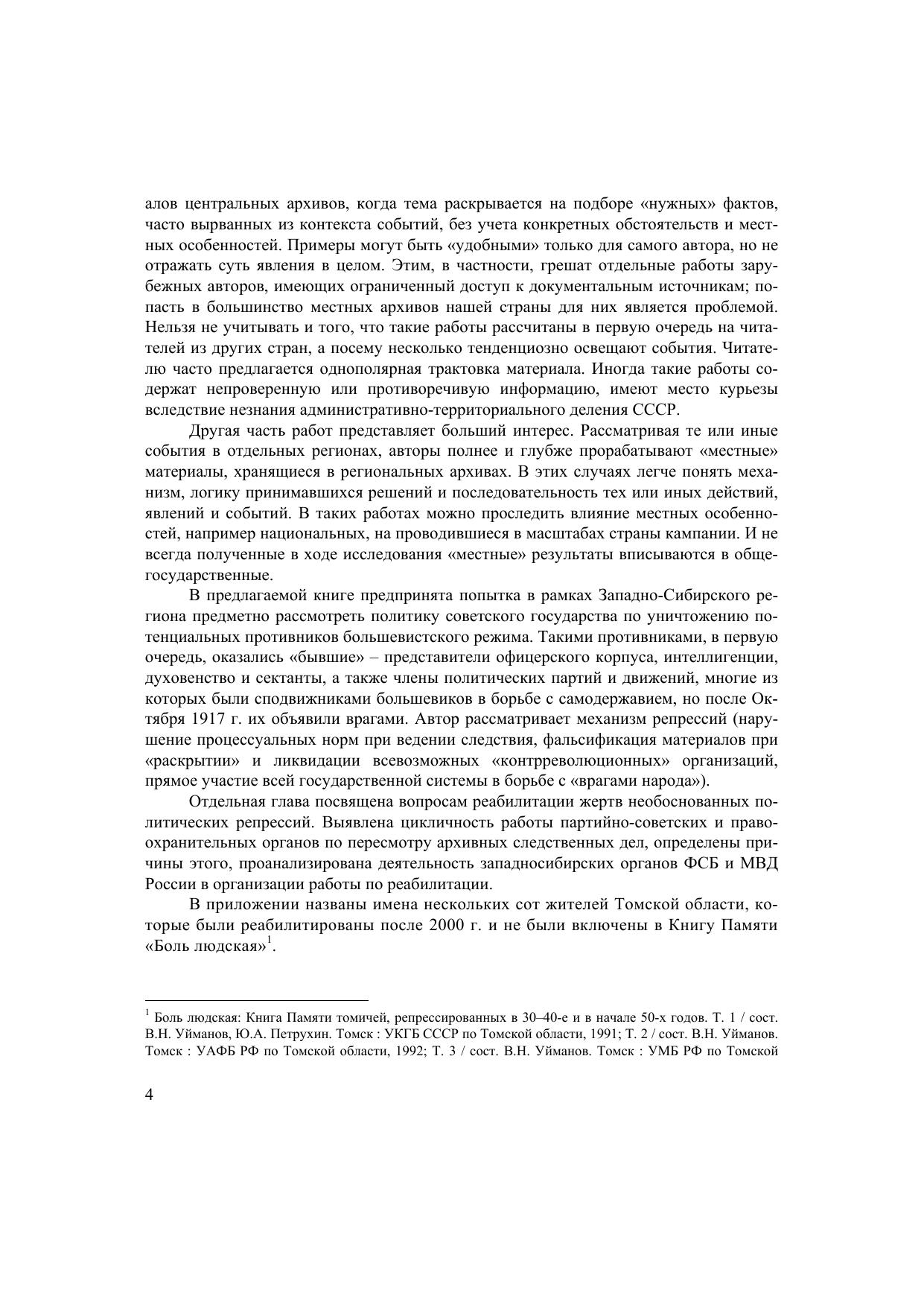 В монографии представлен опыт исторического исследования периода политических репрессий в СССР в масштабе Западно-Сибирского региона. Целенаправленное и плановое изучение документов и материалов фондов шести сибирских архивов позволило автору предметно рассмотреть политику Советского государства по уничтожению потенциальных противников режима, описать механизм репрессий (нарушение процессуальных норм, фальсификация материалов и т.д.), раскрыть логику принимавшихся решений, проследить влияние местных особенностей на организованные в масштабе страны кампании. Отдельная глава посвящена вопросам реабилитации жертв политических репрессий и анализу деятельности органов ФСБ и МВД России в организации этой работы. Для научных работников, преподавателей, студентов и всех, кто интересуется советским периодом в истории России и Сибири.