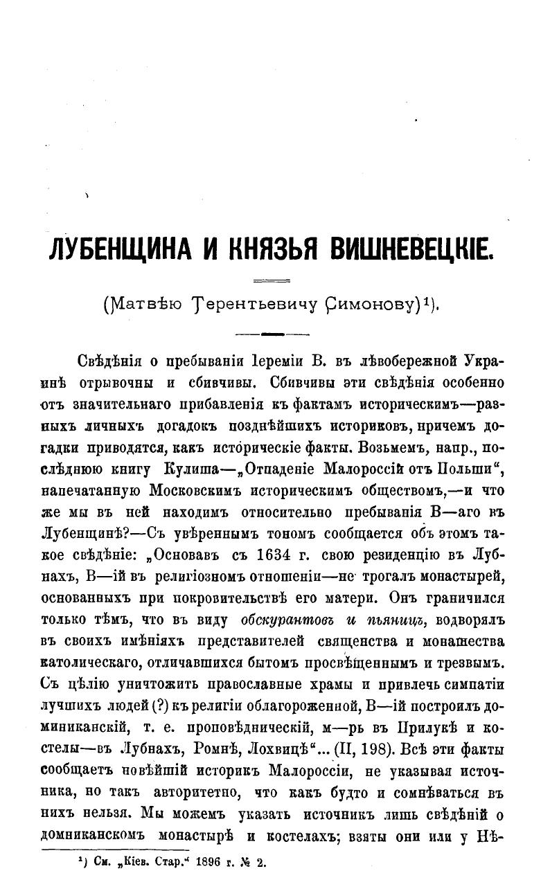 Лубенщина и князья Вишневецкие.