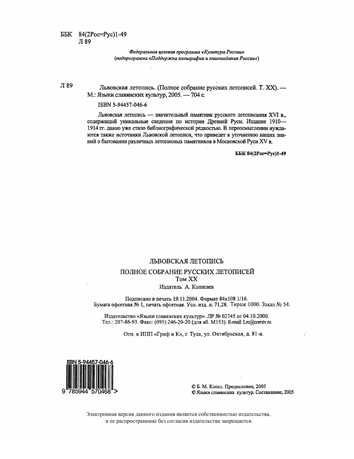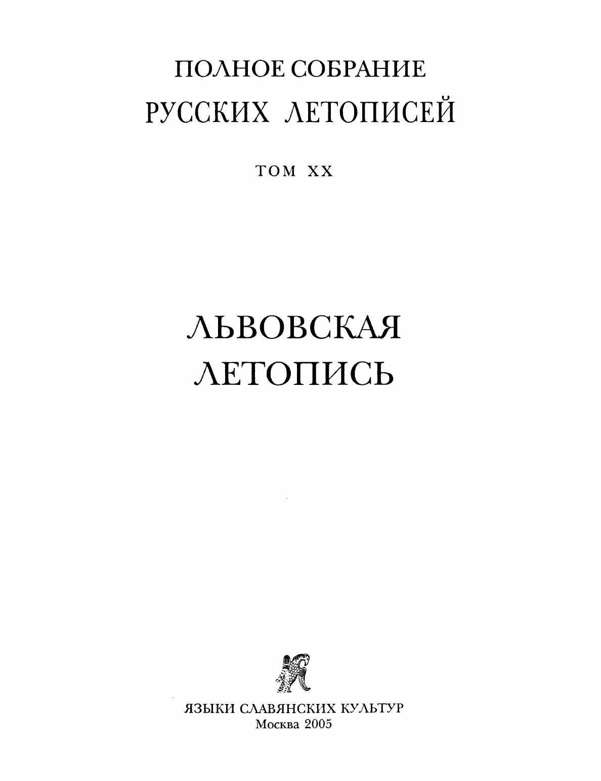 Львовская летопись (Полное собрание русских летописей. Т. XX)