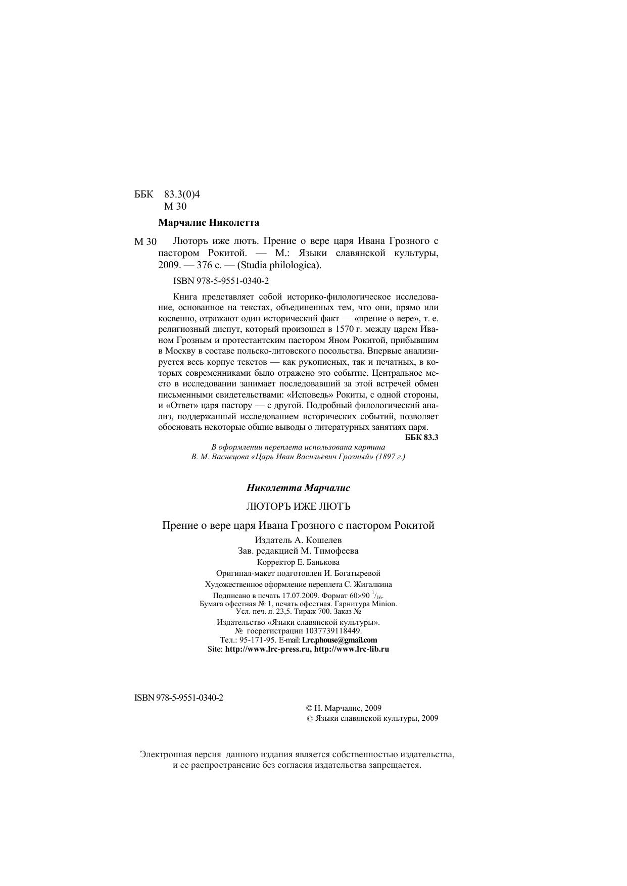 Книга представляет собой историко-филологическое исследование, основанное на текстах, объединенных тем, что они, прямо или косвенно, отражают один исторический факт - "прение о вере", т.е. религиозный диспут, который произошел в 1570 г. между царем Иваном Грозным, и протестантским пастором Яном Рокитой, прибывшим в Москву в составе польско-литовского посольства. Впервые анализируется весь корпус текстов, - как рукописных, так и печатных, в которых современниками было отражено это событие. Центральное место в исследовании занимает последовавший за этой встречей обмен письменными свидетельствами "Исповедь" Рокиты, с одной стороны, и "Ответ" царя пастору - с другой. Подробный филологический анализ, поддержанный исследованием исторических событий, позволяет обосновать некоторые общие выводы о литературных занятиях царя. Книга предназначена для историков, филологов, религиоведов.