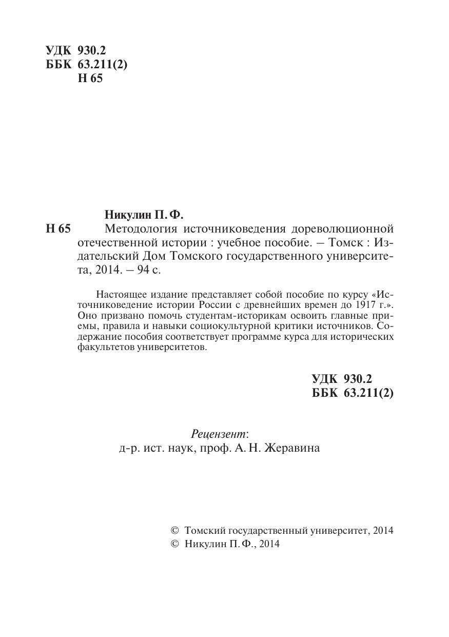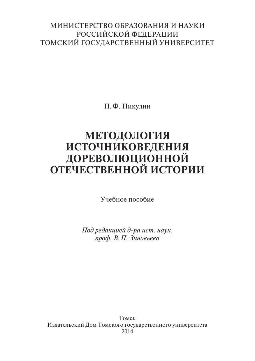 Методология источниковедения дореволюционной отечественной истории