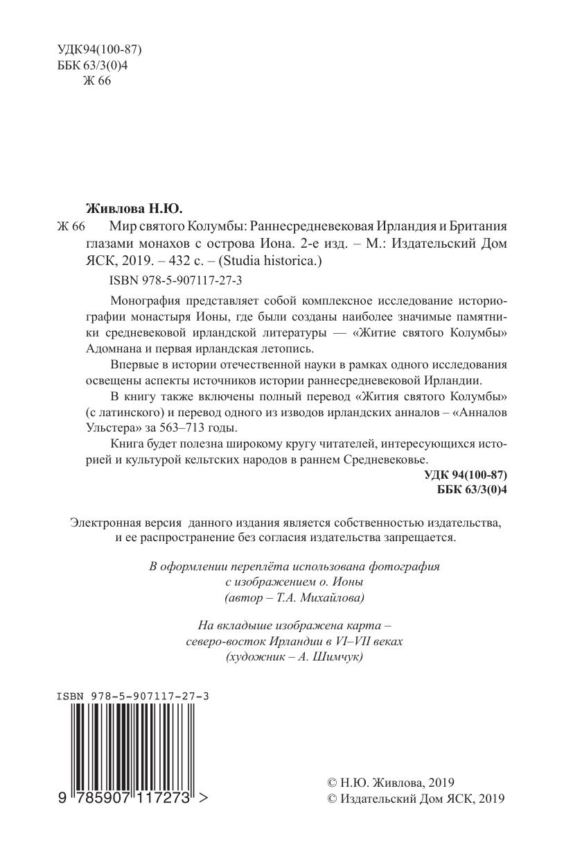 Монография представляет собой комплексное исследование историографии монастыря Ионы, где были созданы наиболее значимые памятники средневековой ирландской литературы — «Житие святого Колумбы» Адомнана и первая ирландская летопись. Впервые в истории отечественной науки в рамках одного исследования освещены аспекты источников истории раннесредневековой Ирландии. В книгу также включены полный перевод «Жития святого Колумбы» (с латинского) и перевод одного из изводов ирландских анналов – «Анналов Ульстера» за 563–713 годы. Книга будет полезна широкому кругу читателей, интересующихся историей и культурой кельтских народов в раннем Средневековье.