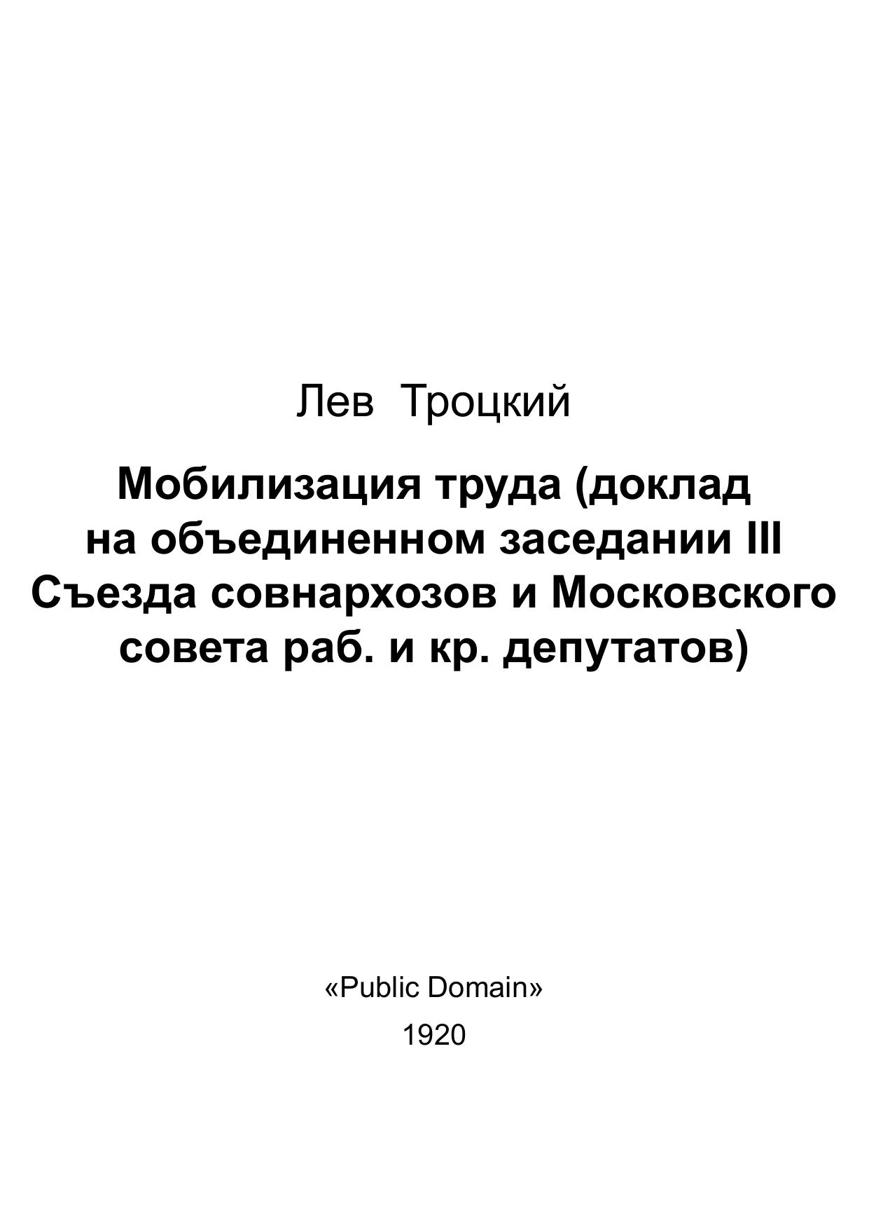 Мобилизация труда (доклад на объединенном заседании III Съезда совнархозов и Московского совета раб. и кр. депутатов)