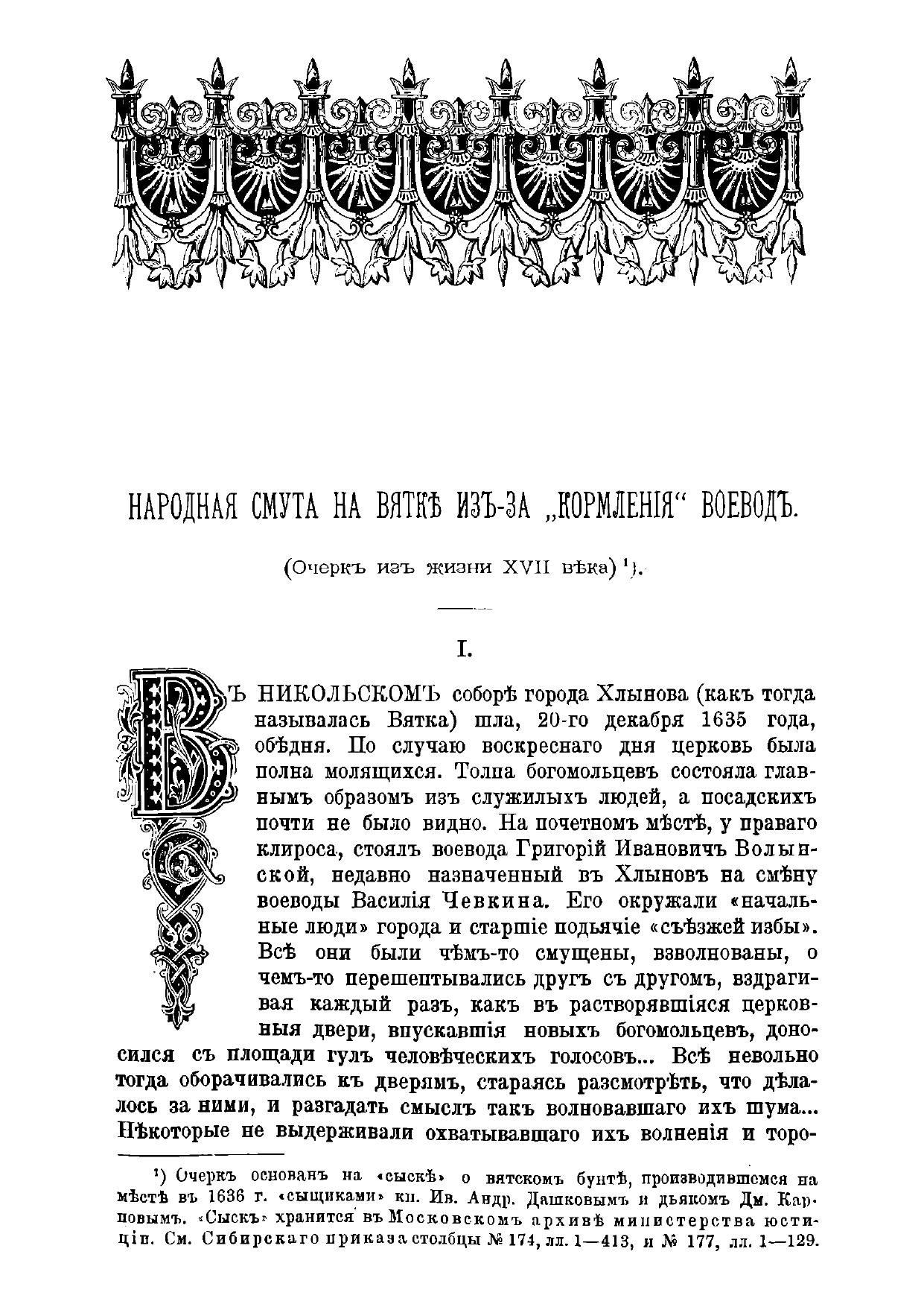 Народная смута на Вятке из-за "кормления" воевод (Очерк из жизни XVII века)