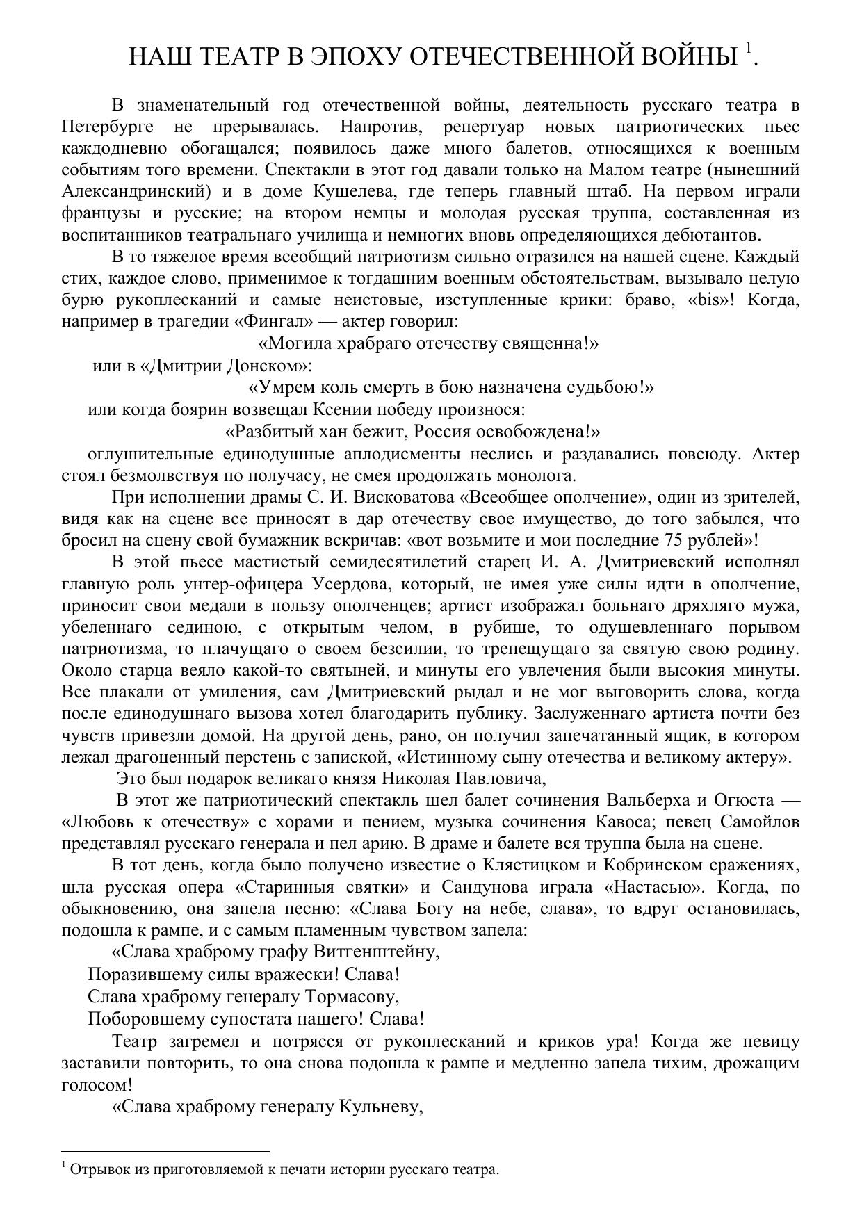 Наш театр в эпоху отечественной войны