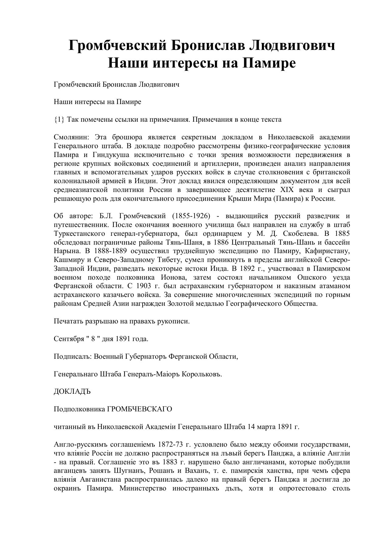 Наши интересы на Памире. Военно-политический очерк