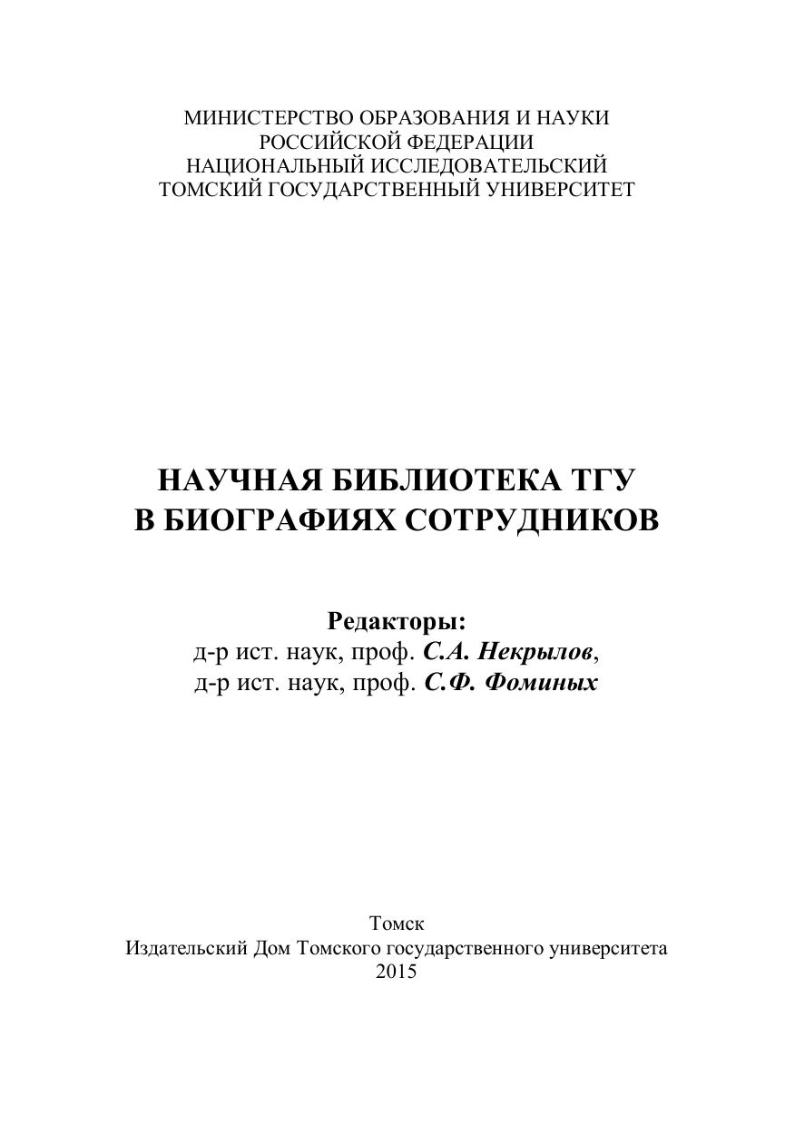 Издательство: Национальный исследовательский Томский государственный университет