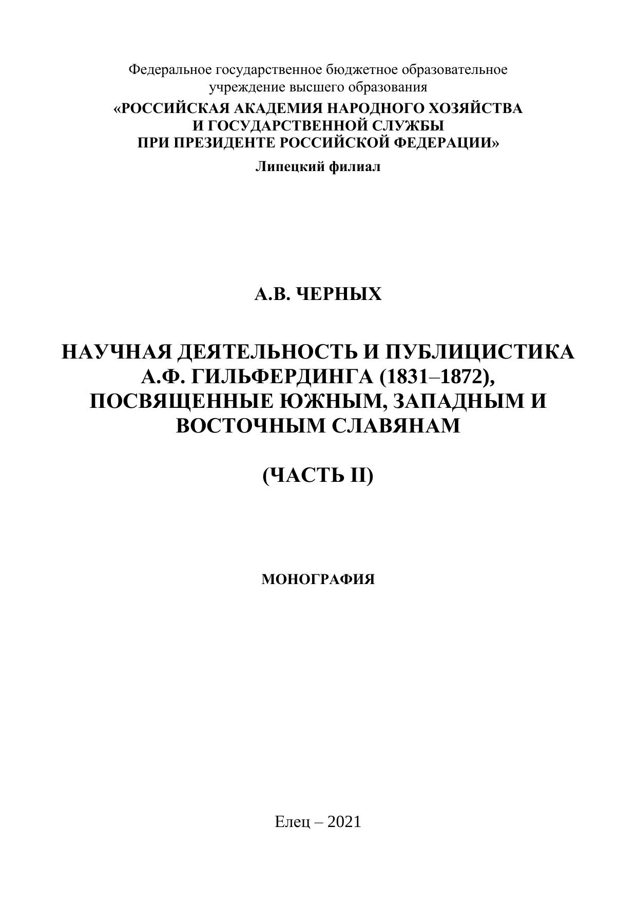 Научная деятельность и публицистка А.Ф. Гильфердинга (1831–1872), посвященные южным, западным и восточным славянам (Часть II)