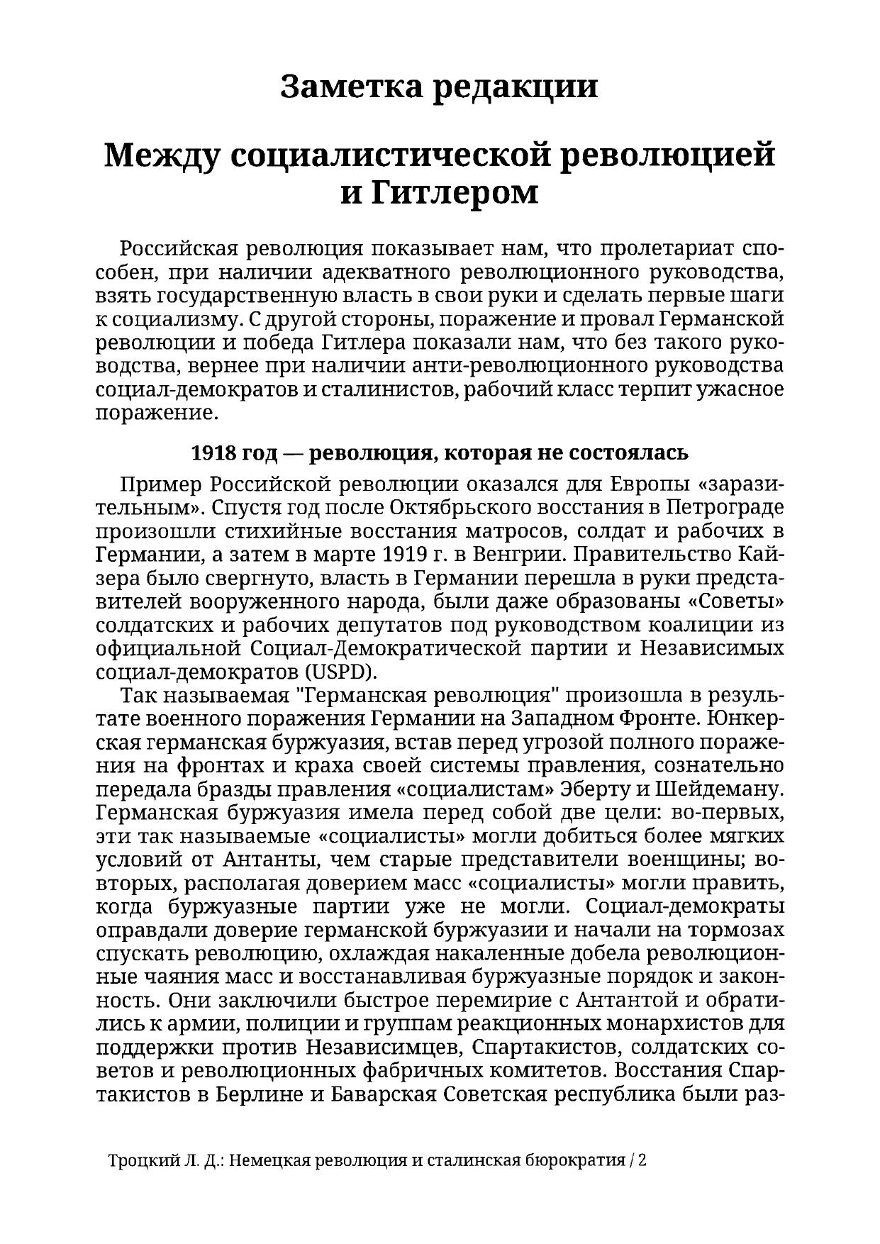 Немецкая революция и сталинская бюрократия