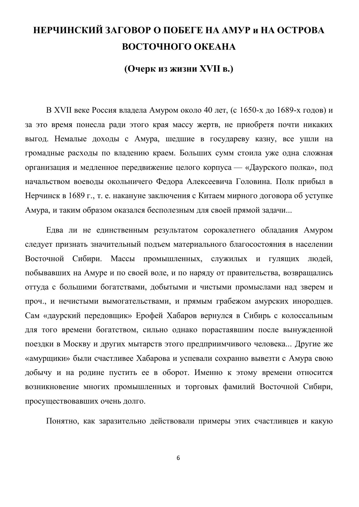 Нерчинский заговор о побеге на амур и на острова восточного океана (Очерк из жизни XVII в.)