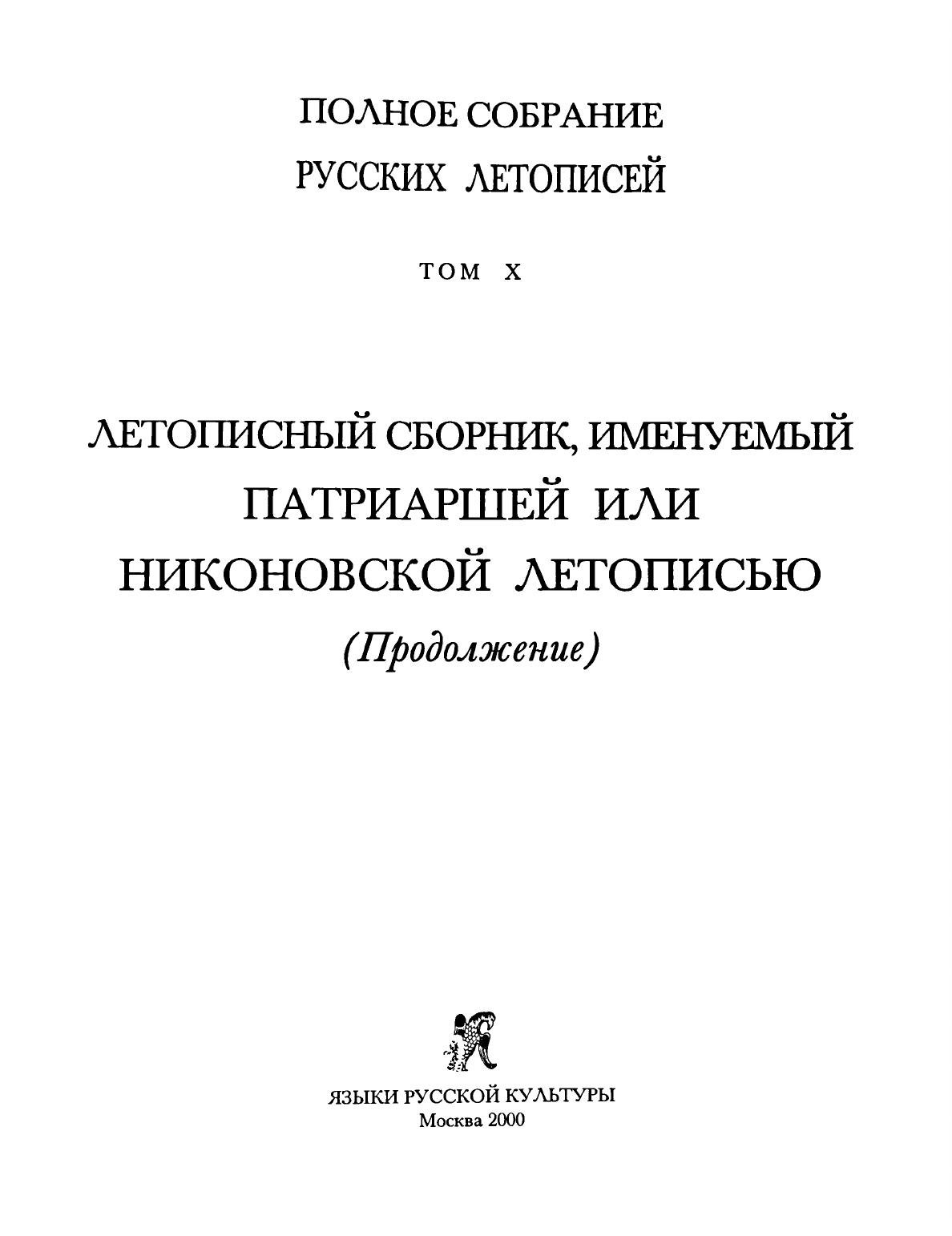 Никоновская летопись (Полное собрание русских летописей. Т. Х)
