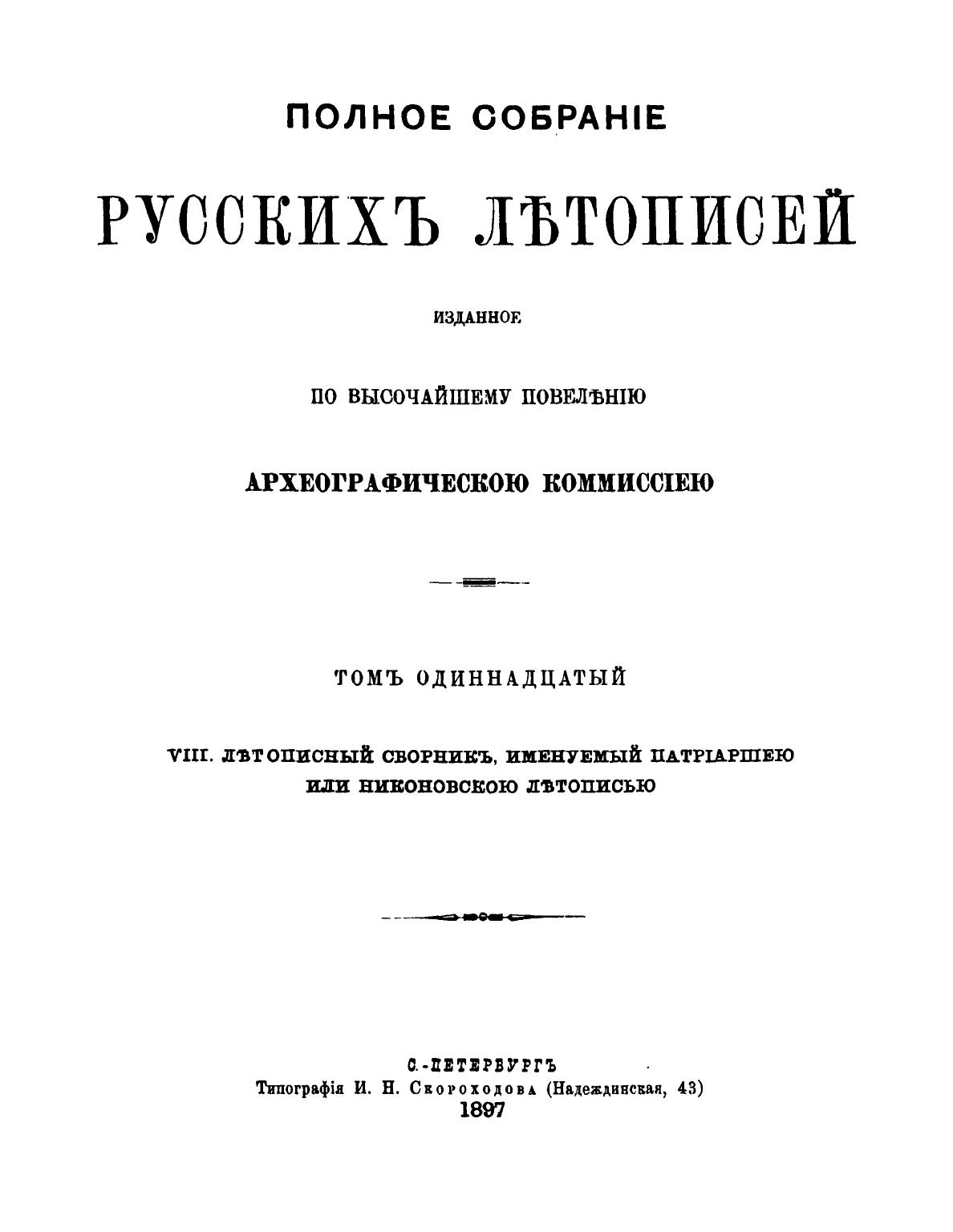 Никоновская летопись (Полное собрание русских летописей. Т. ХI)