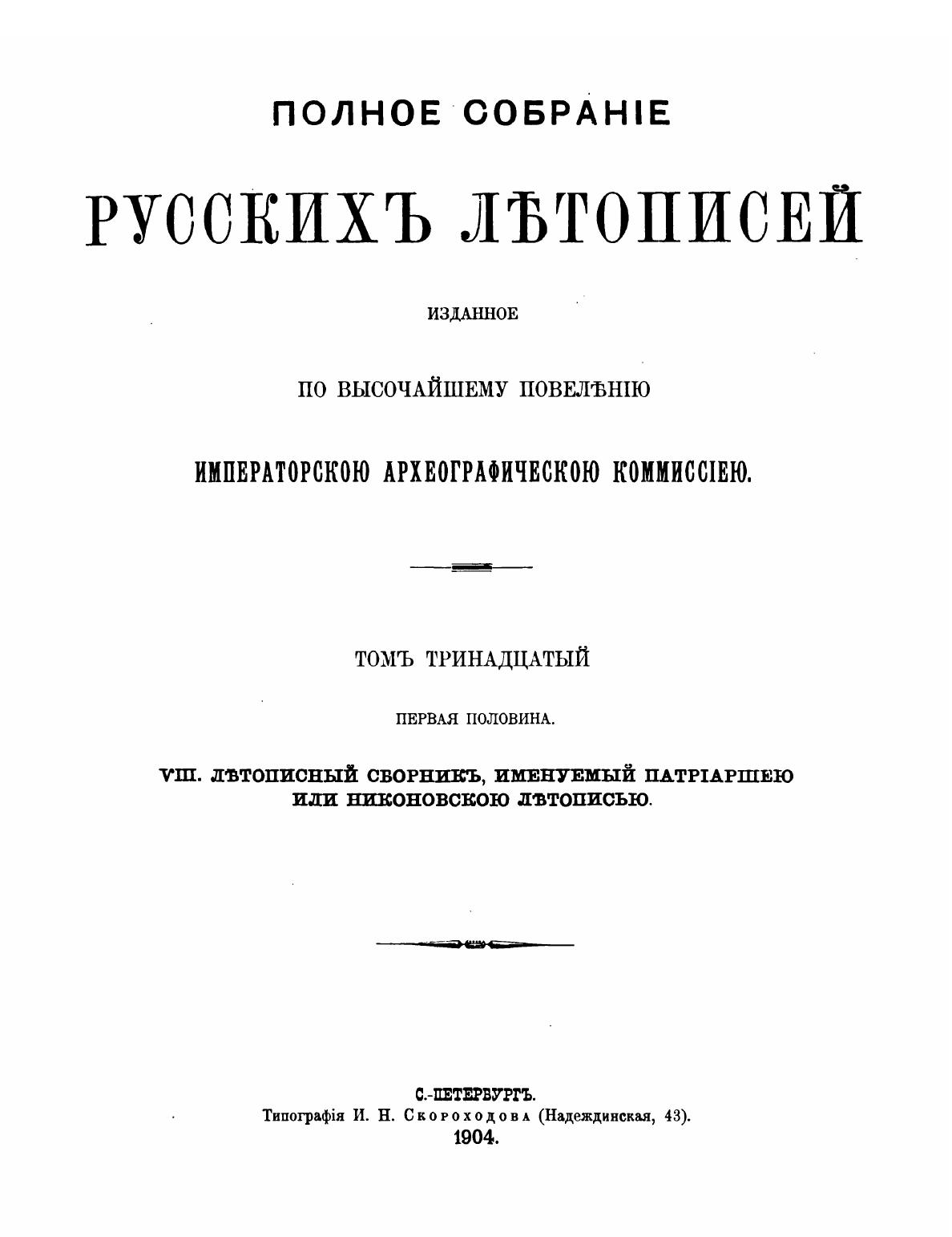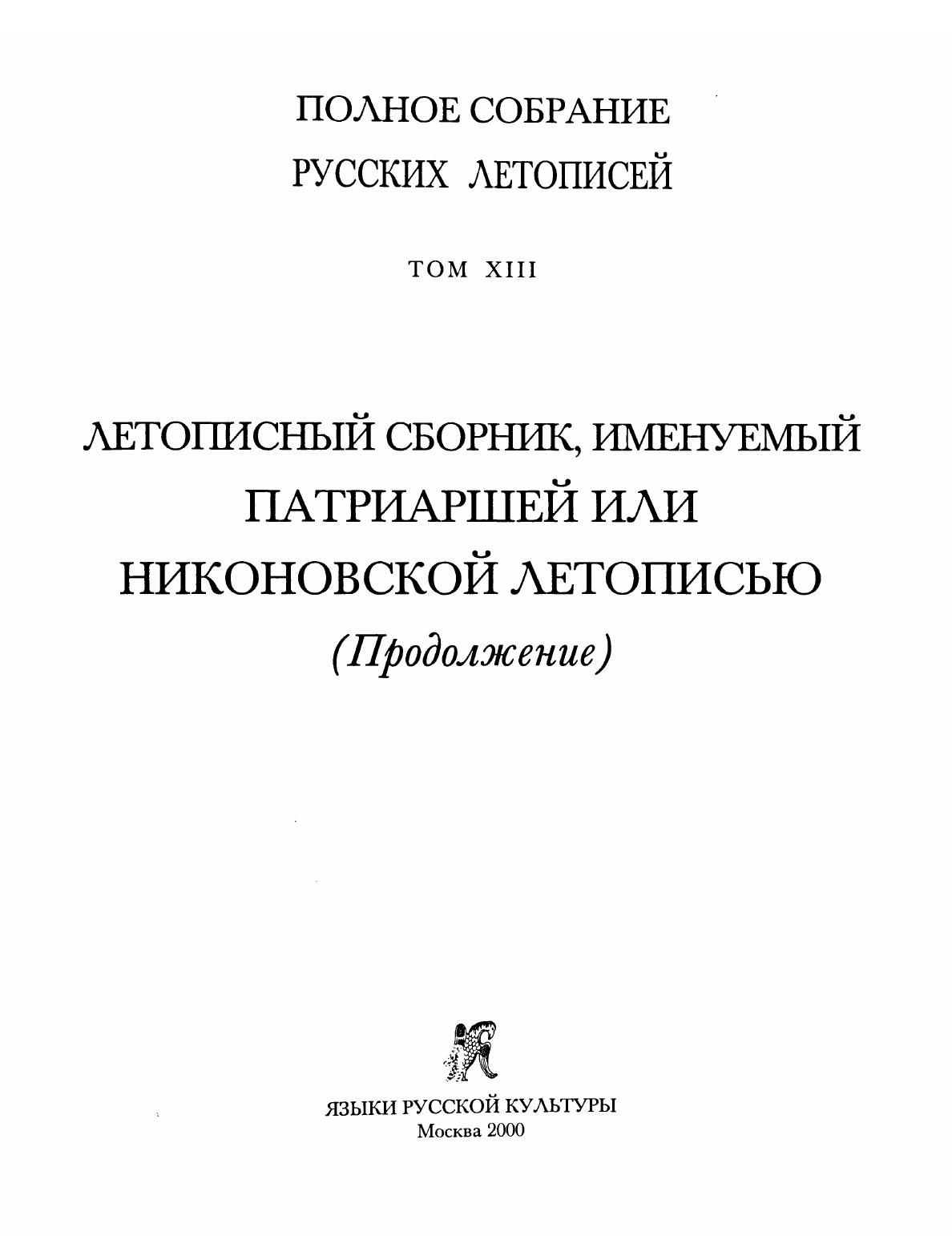 Никоновская летопись (Полное собрание русских летописей. Т. ХIII)